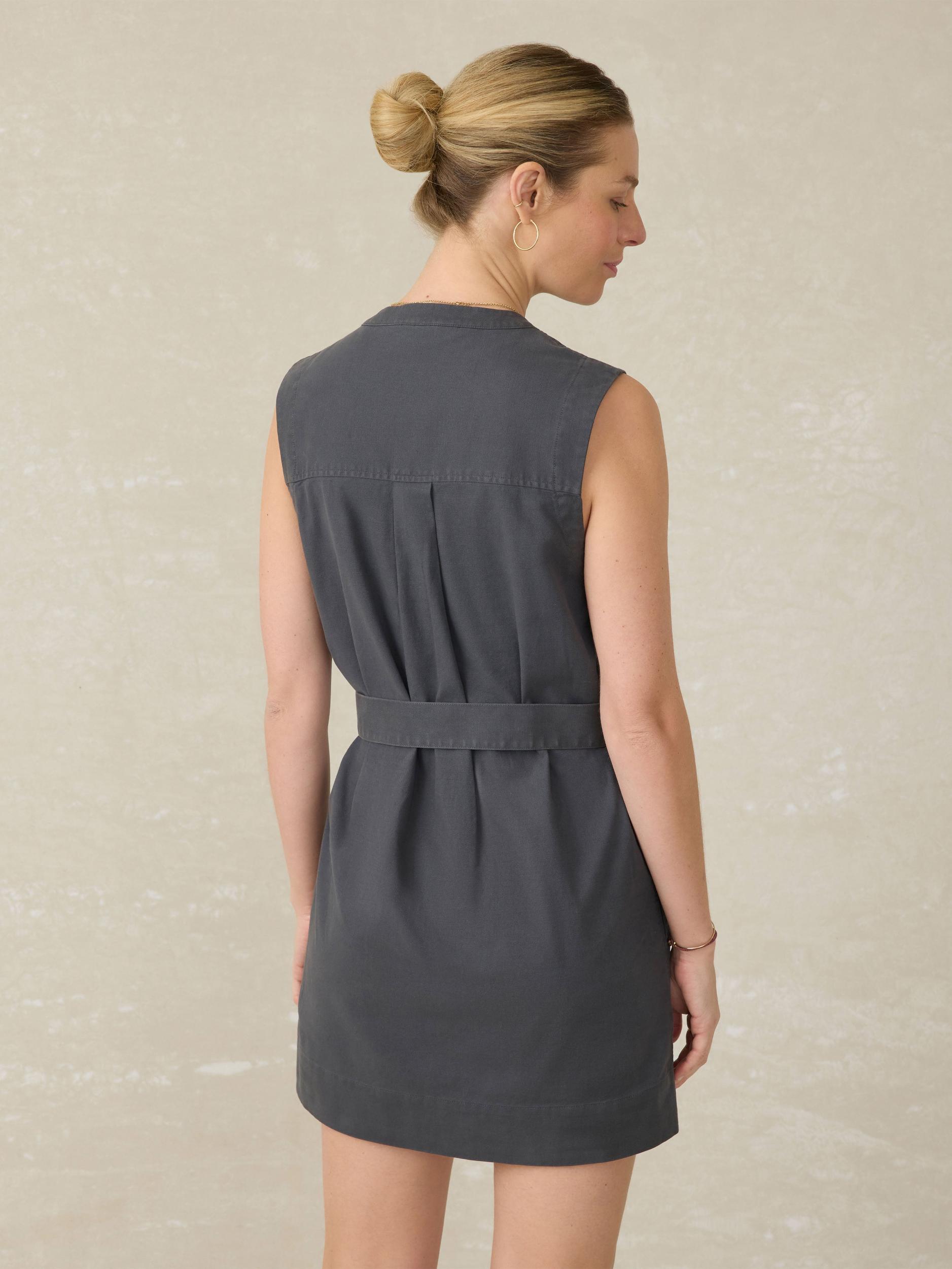 A versatile take on the classic utility dress, this tank silhouette blends laid-back ease with thoughtful details. Designed with a mandarin collar, patch pockets, and a flattering shape, it’s crafted from soft organic cotton with a hint of stretch for all-day comfort and a perfect fit. The breathable fabric is sustainably sourced and garment-washed for a lived-in feel from day one. Whether paired with sneakers for casual outings or sandals for summer nights, it’s a warm-weather staple that feels as good as it looks. Fit: Classic Fit, Length: 34½" Detail: Functional placket with horn buttons. Patch pockets at chest and pockets at side seams. Button loops at waist with self belt and horn D-ring closure. Material: 98% Organic Cotton, 2% Spandex Model: Chloe is 5'10 wearing size Medium Care: Close all fastening before wash. Turn inside out. Machine wash cold with like colors. Delicate cycle. Do not bleach. Tumble dry low. Remove promptly. Cool iron when needed. WDS2586-WBK