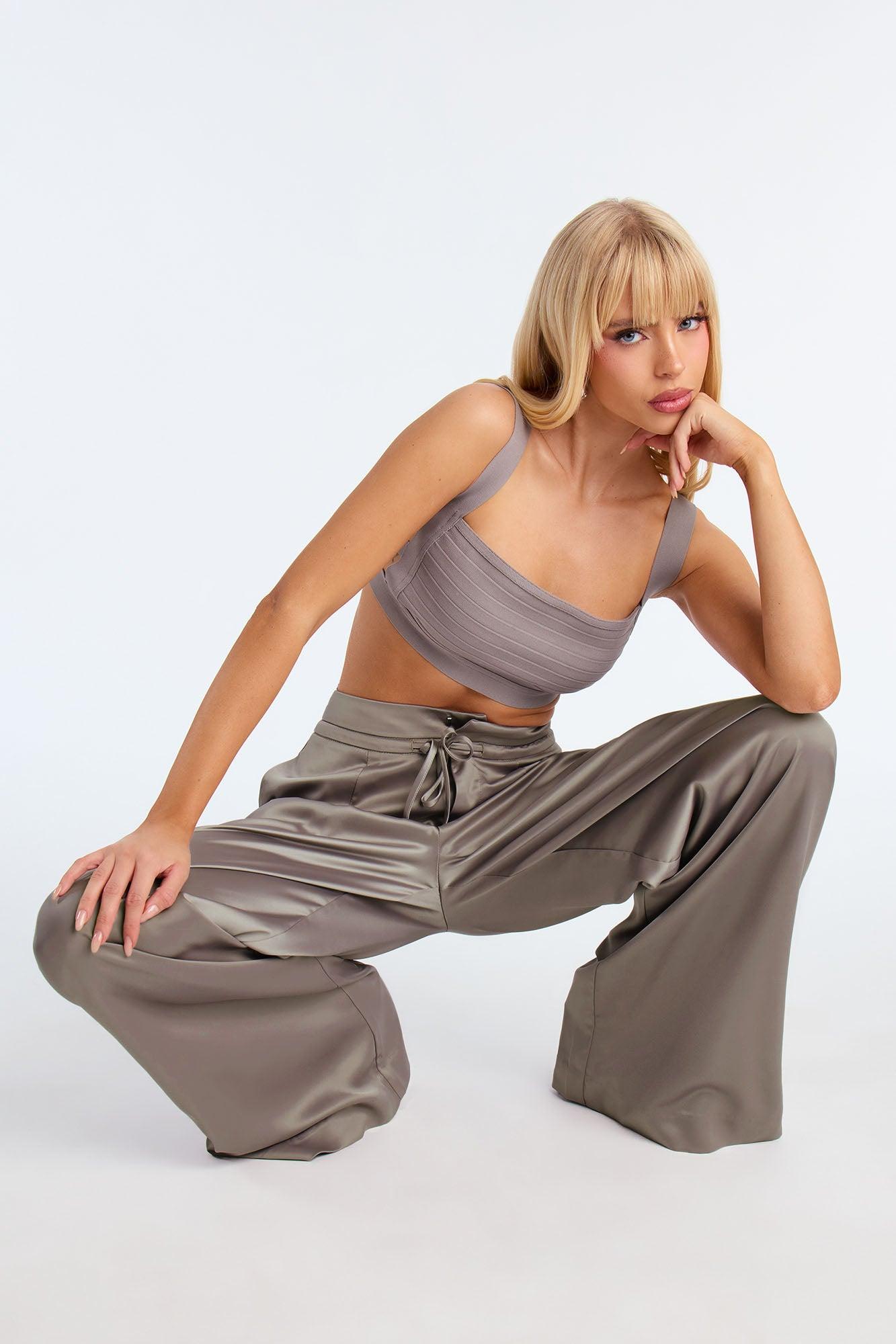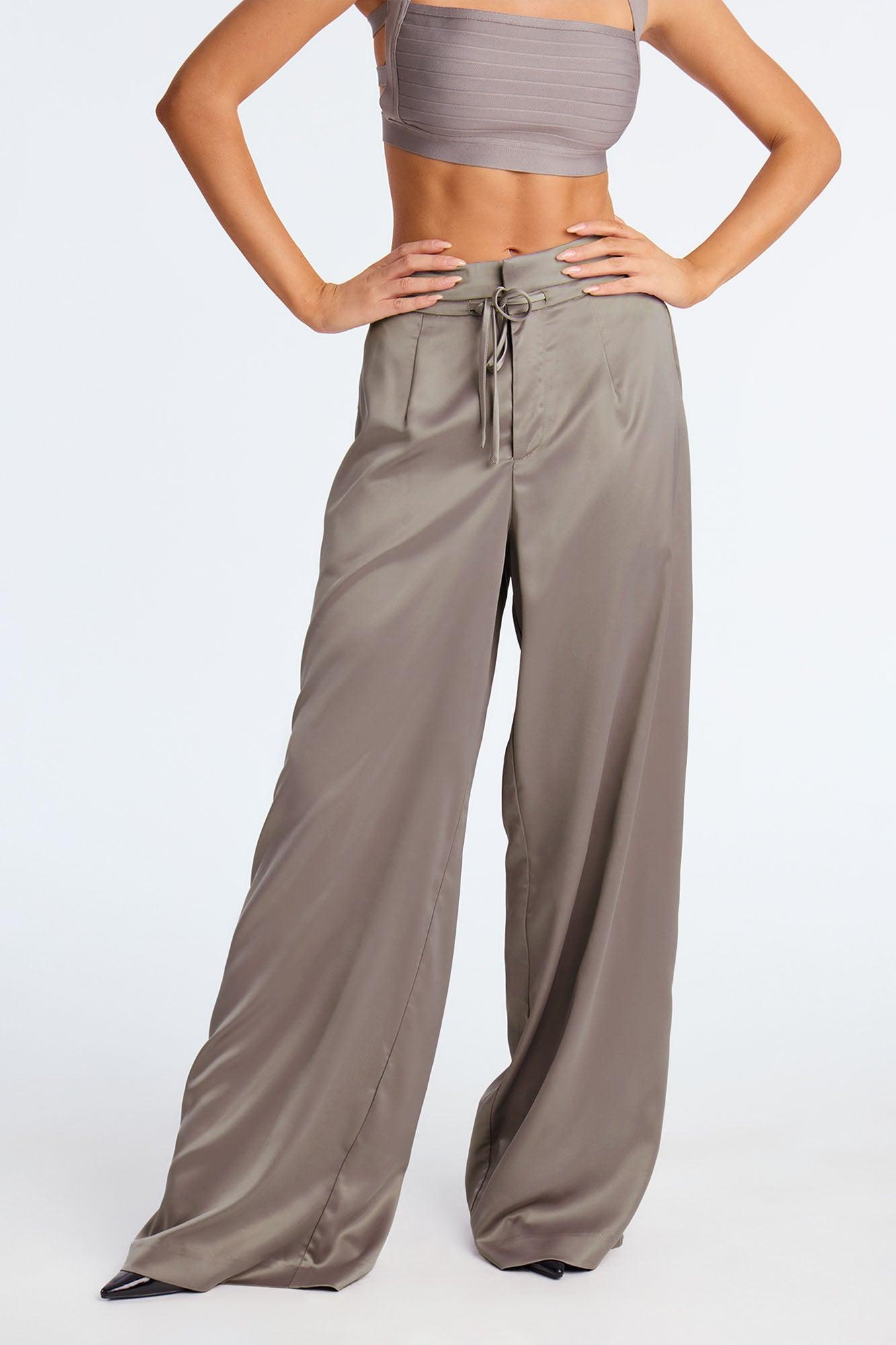 Avani Wide Leg Satin Pant 33 - Grey Female