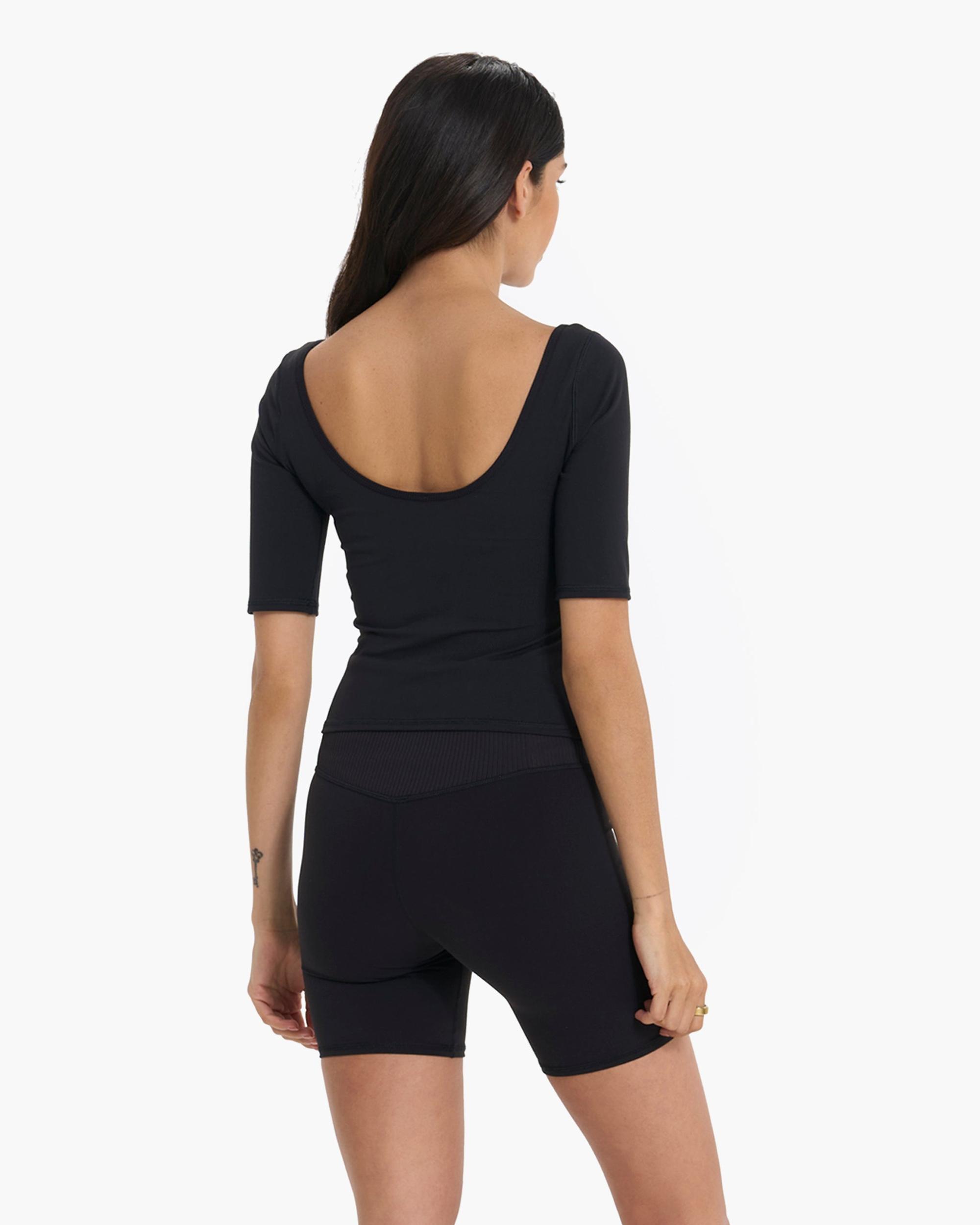 Featuring our BreatheInterlock™ performance stretch knit fabric, moisture wicking, medium support, built-in shelf bra with jersey lining , scooped neckline, close to body fit, and woven logo patch.