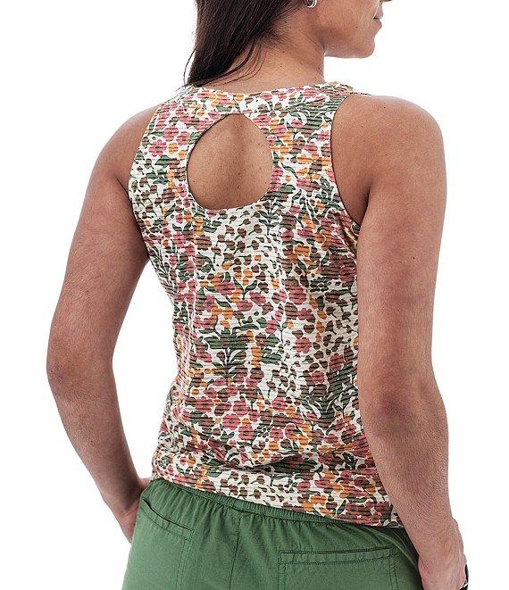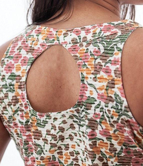 From Aventura, this top features: Single knit jersey fabrication Burnout floral print Soft v-neckline Sleeveless Back cut-out detail Relaxed fit Straight hemline Pullover construction Approx. 24" length Organic cotton Machine wash Imported.
