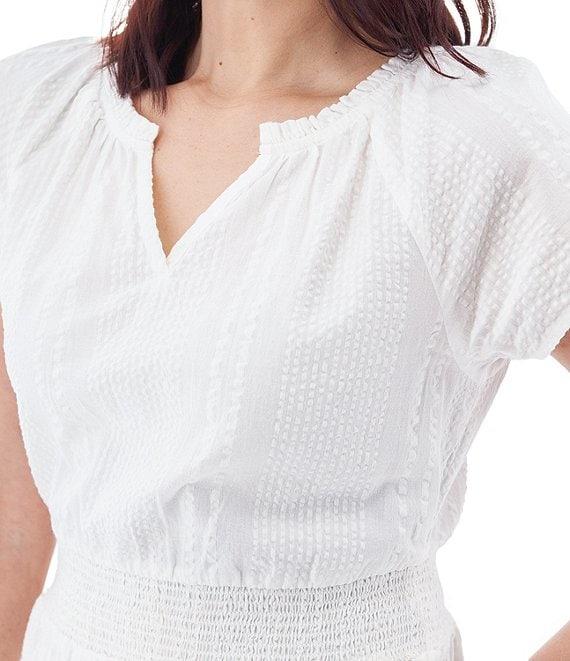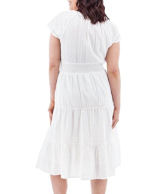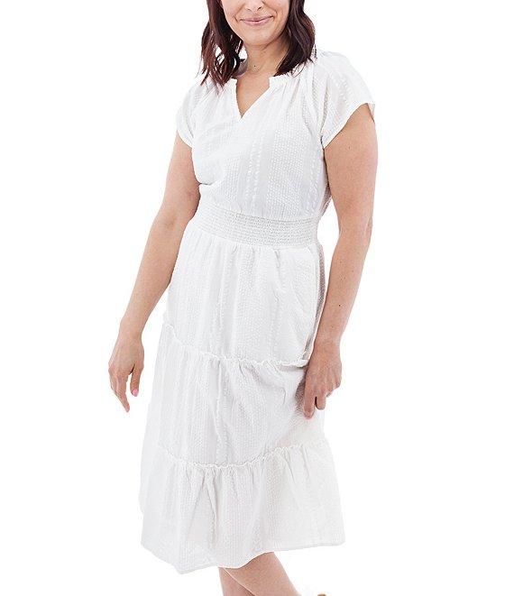 Aventura Colmar Seersucker Woven Split V-Neck Tiered Midi A-Line Dress