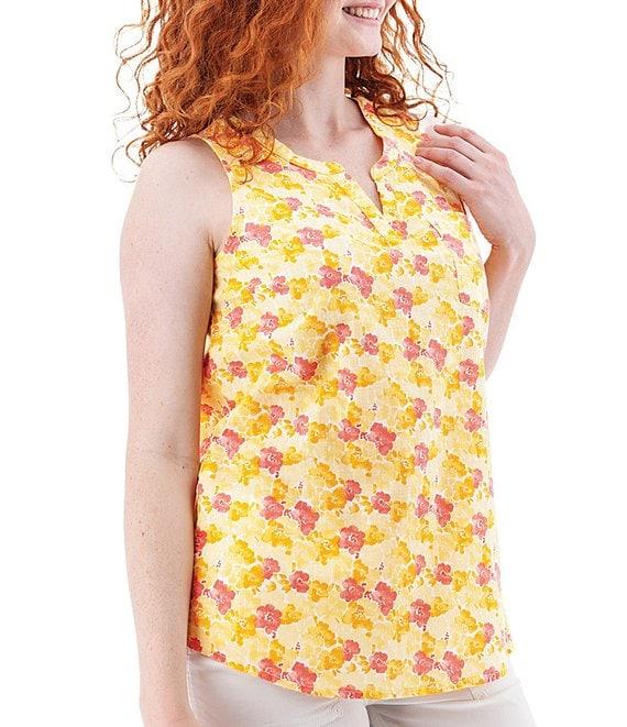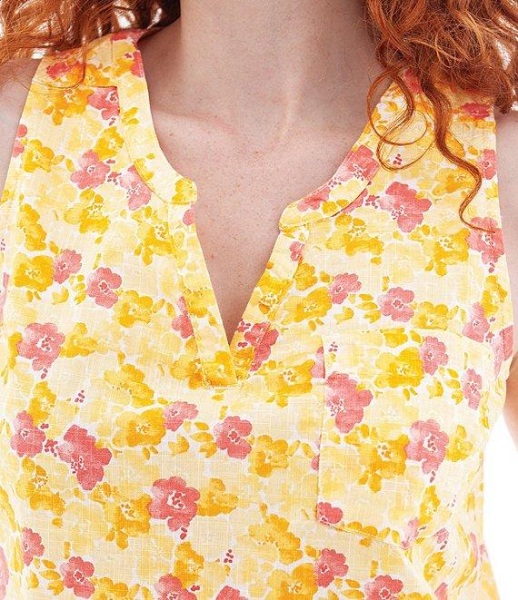 From Aventura, this tank features: All over print Crew neckline Sleeveless Side slits Pull over construction Approx. 27.5" length Organic cotton Machine washable Imported.
