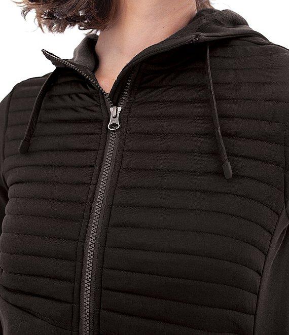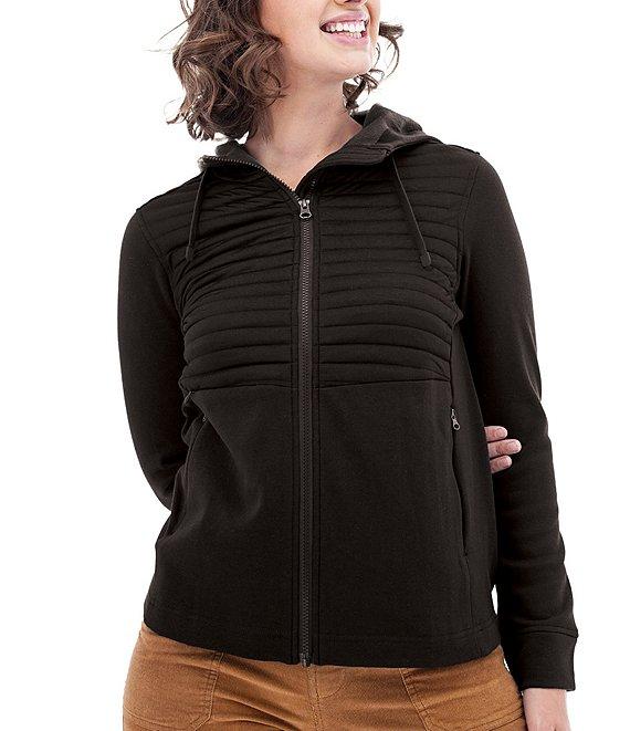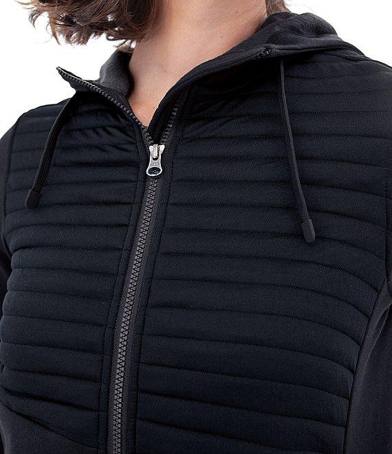 From Aventura, this jacket features: Fleece inner lining fabrication Hooded long sleeves UPF 30+ protection Integrated zip closure pockets Doggie treat pocket Center front zip closure Approx. 25.5" length Recycled polyester/cotton/spandex Machine wash/tumble dry Imported.