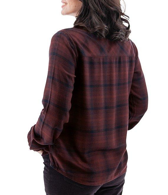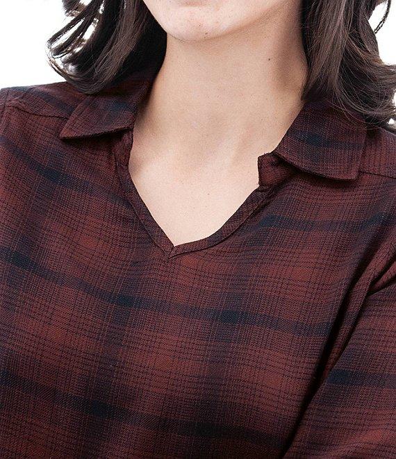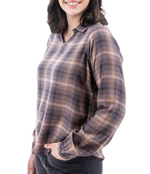 From Aventura, this top features: Woven fabrication Popover silhouette Plaid print Collar v-neckline Long sleeves with button cuffs Relaxed fit Side slit Shirttail hemline Pullover construction Approx. 25" length Lenzing/ecovero/viscose/twill Machine wash Imported.