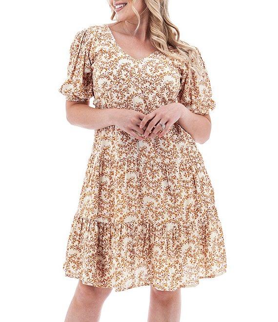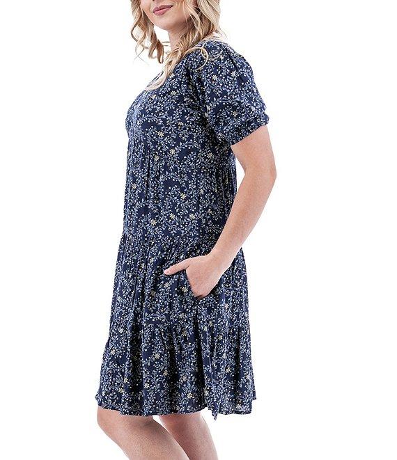 From Aventura, this dress features: Crepe woven fabrication A-line silhouette Floral print V-neckline Short puff sleeves with elastic cuffs Hip pockets Soft v-back Relaxed fit Tiered hemline Pull-on construction Approx. 37" length Lenzing ecovero/viscose Machine wash Imported.