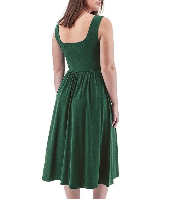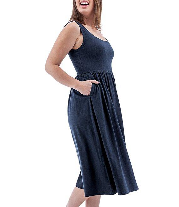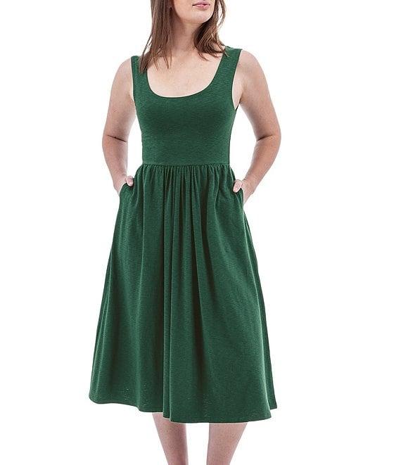 From Aventura, this dress features: Slub knit jersey fabrication Fit & flare silhouette Large scoop neckline Sleeveless Hip pockets Ruching waist Double layer bodice Relaxed fit Straight hemline Pullover construction Approx. 44.5" length Organic cotton/Tencel modal/elastane Machine wash Imported.