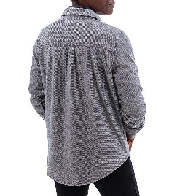 From Aventura, this top features: Soft fleece fabrication Shirt silhouette Point collar neckline Long sleeves with button cuffs One chest patch pocket Boyfriend fit Shirttail hemline Button front closure Approx. 28" length Recycled polyester/rayon/spandex Machine wash Imported.