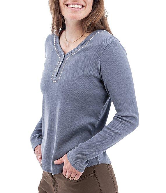 Aventura Nevis Organic Cotton Blend Henley Embroidered V-Neck Rib Knit Top