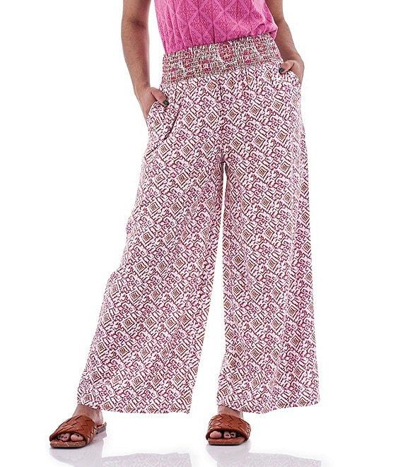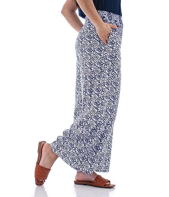 Aventura Portofino Printed Woven Wide Smocked Waist Wide Leg Palazzo Pants