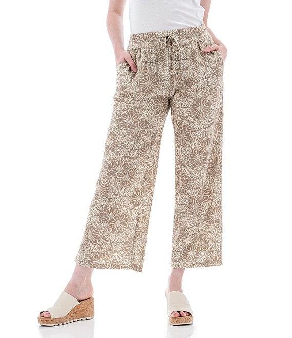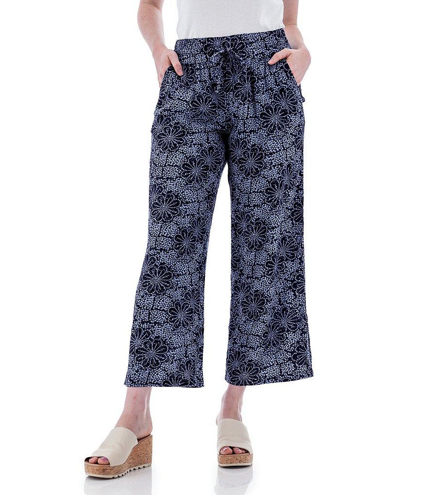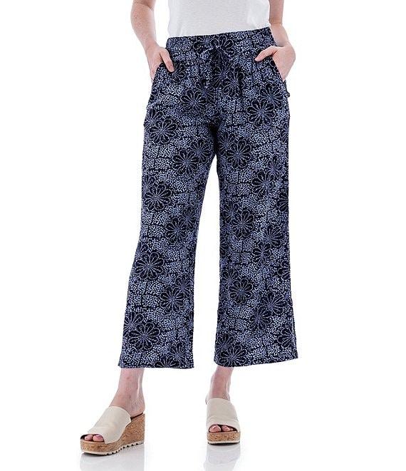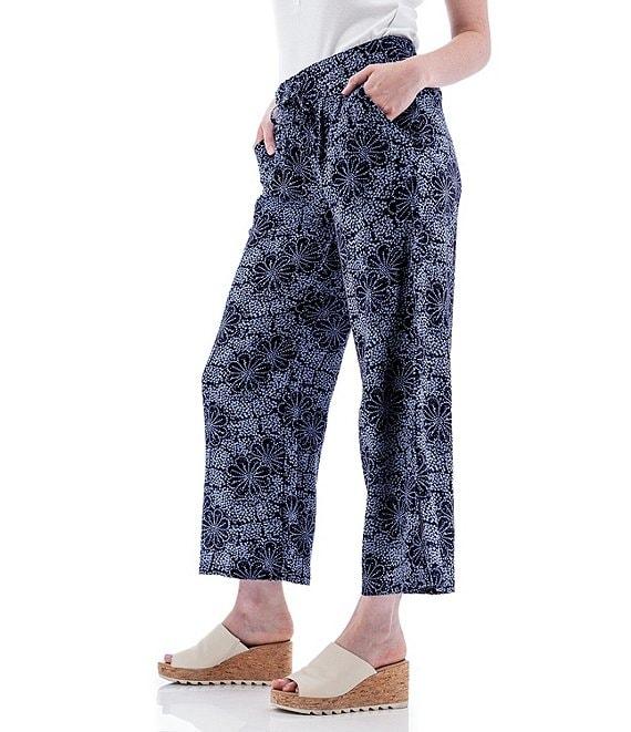 From Aventura, these pants feature: Crepe woven fabrication Floral print Crop silhouette Drawstring elastic waistband Wide leg Hip pockets 6" side slit Relaxed fit Pull-on construction Approx. 28" inseam Lenzing ecovero/viscose Machine wash Imported.