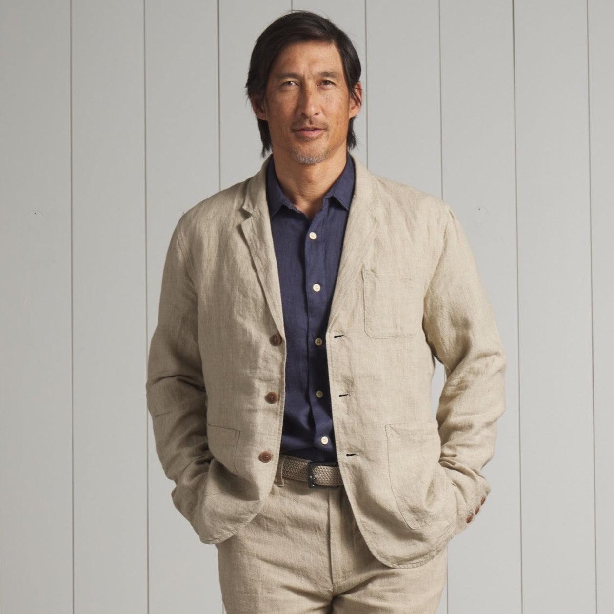 The Aventura is made from naturally breathable linen in heather natural yarn that wears well with our printed shirts, a solid button down or a polo. Great for holiday dressing like Easter or Graduation, or for dinners out with a polo and chinos.With a three-button front closure, center-vent back, it is unconstructed and half lined, and is expertly finished with piped seams and two patch pockets.