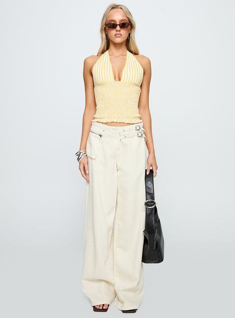 Averin Shirred Halter Top Lemon Stripe