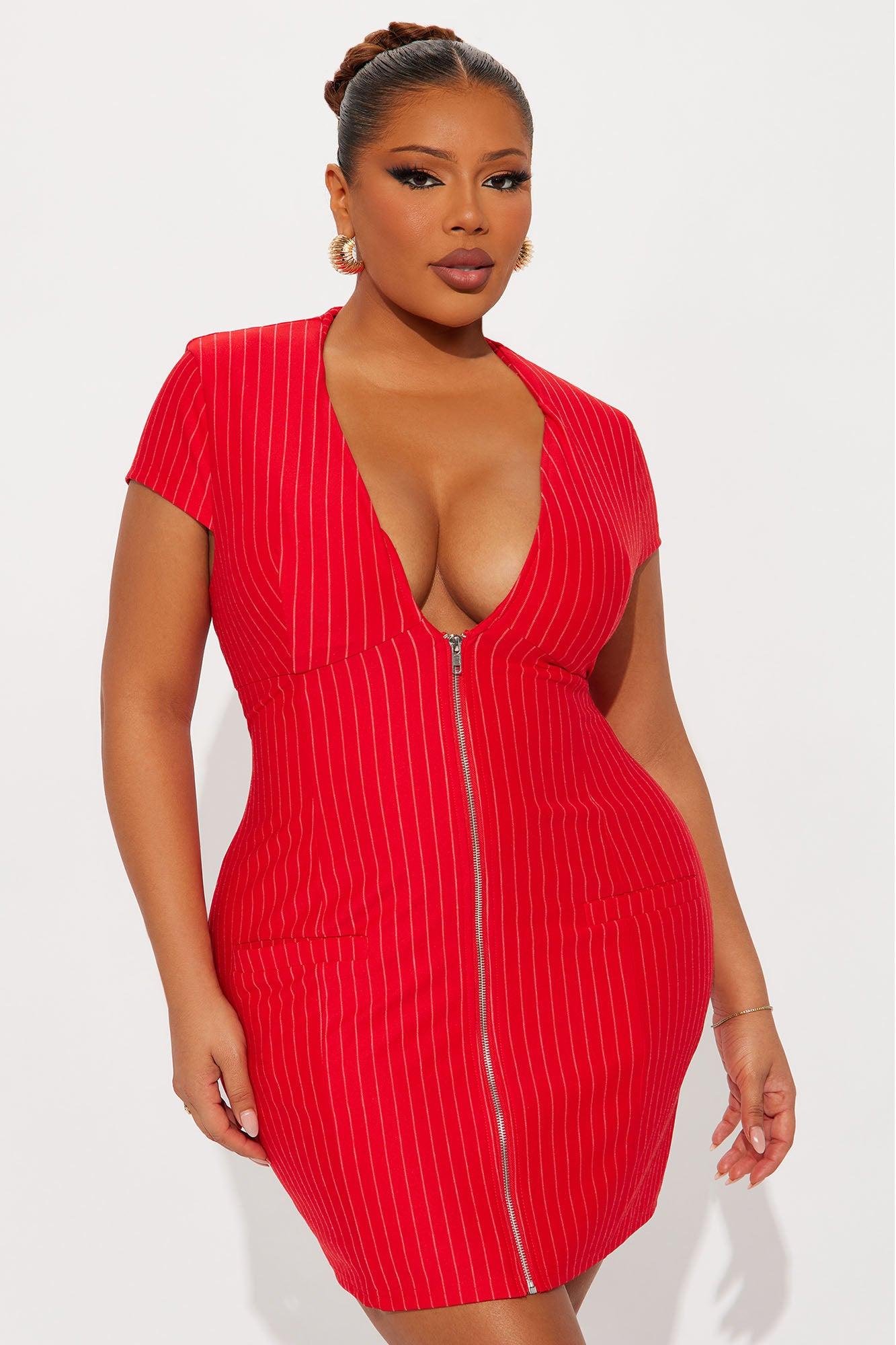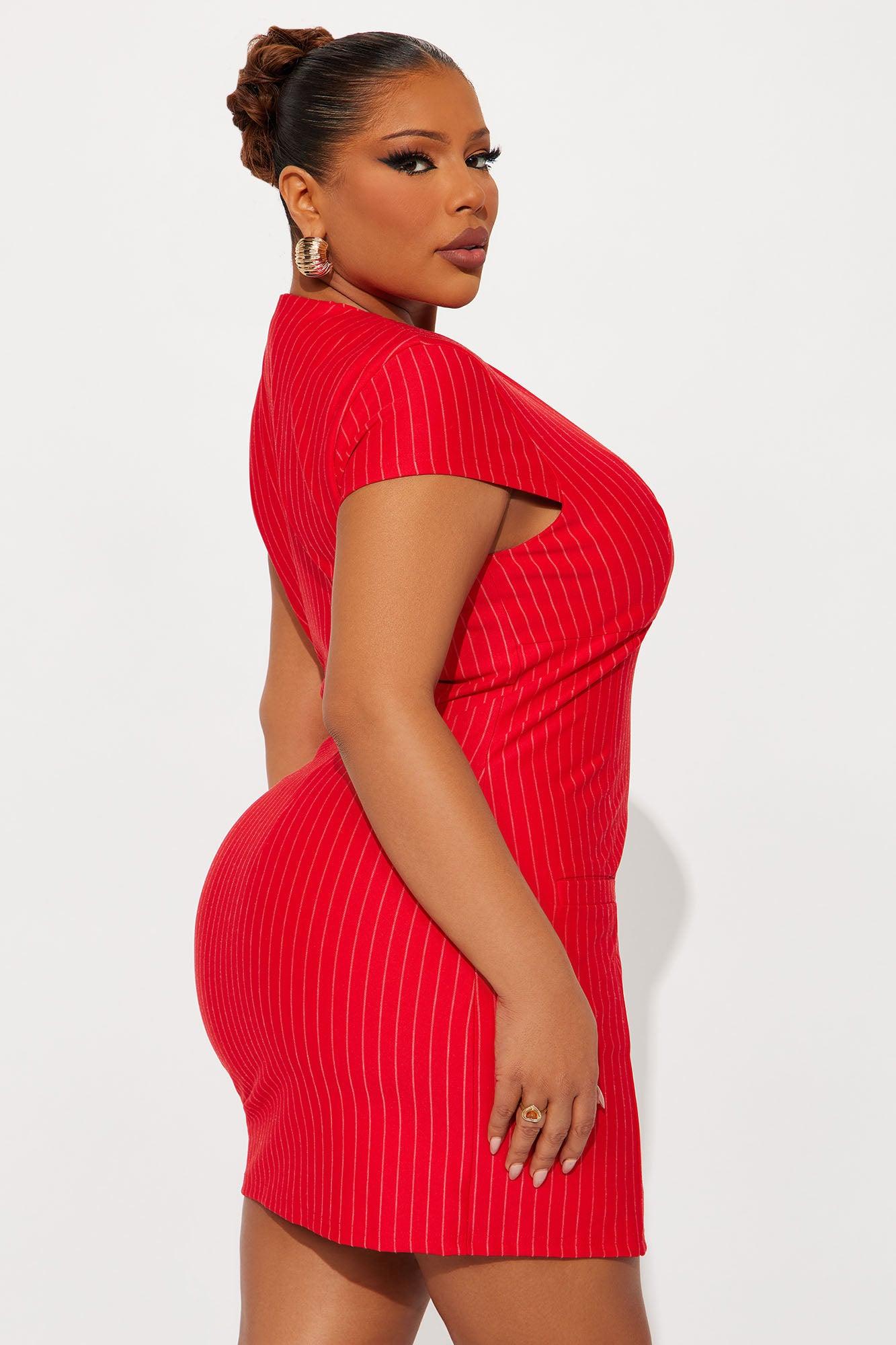 Avery Collar Pinstripe Mini Dress - Red Female