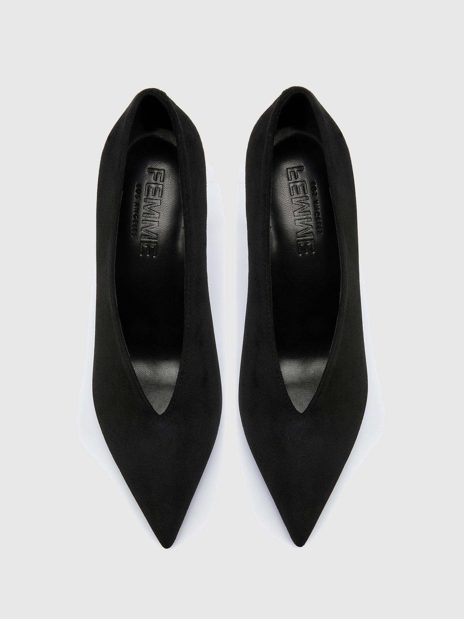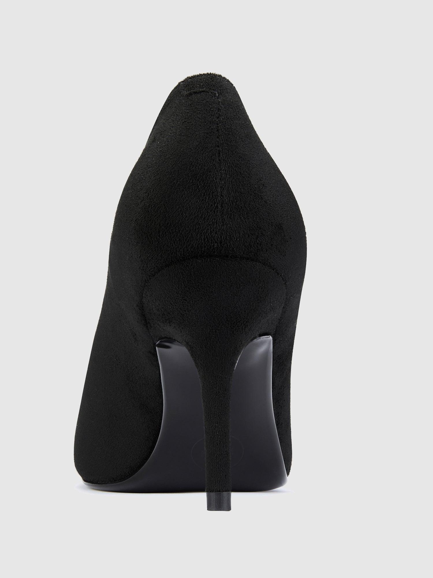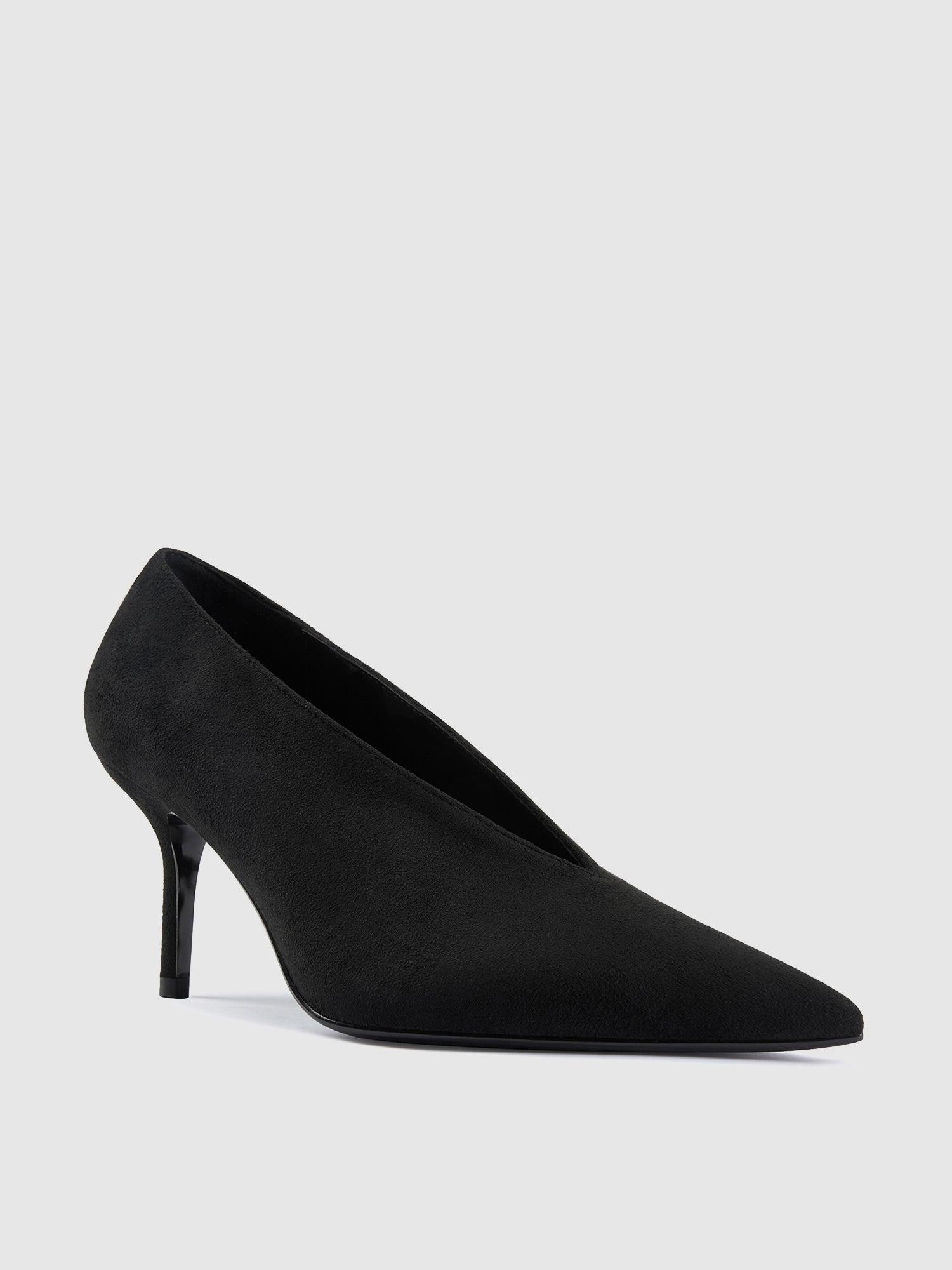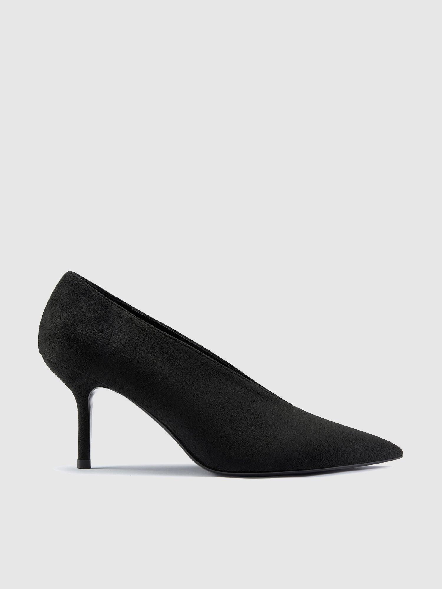 The Avi Pump is encased in a beautiful suede upper, complimented with a versatile 100mm heel. This sleek silhouette is uniquely characterized by its sculpted shape and elegant pointed toe.Suede upperVegan insoleVegan outsoleClosed pointed toeSlip-onHandmadeDesigned in LA Self-covered stiletto heel, " (mm)