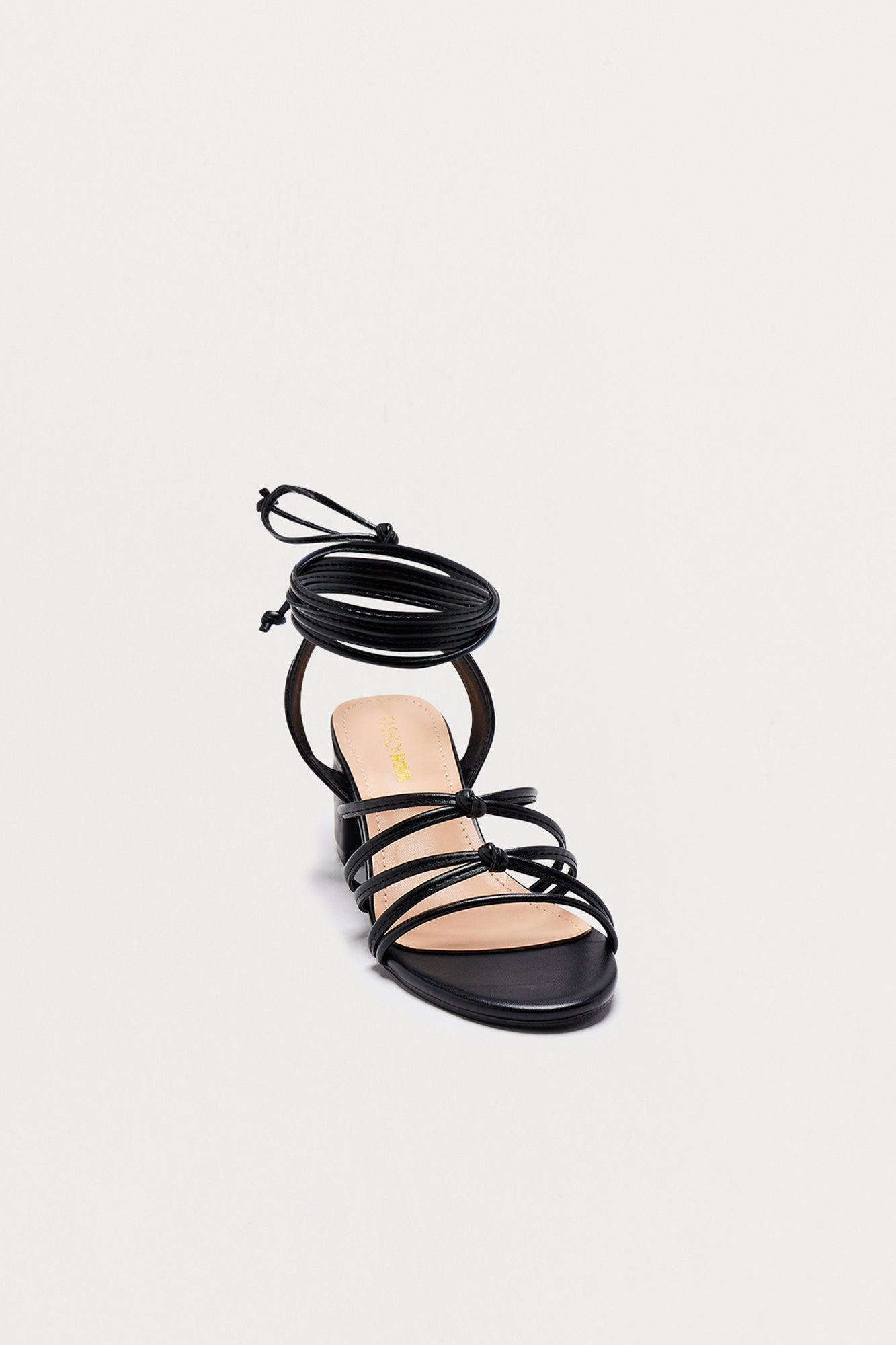 Jai Faux Leather Wrap Up Stiletto Heels - Black