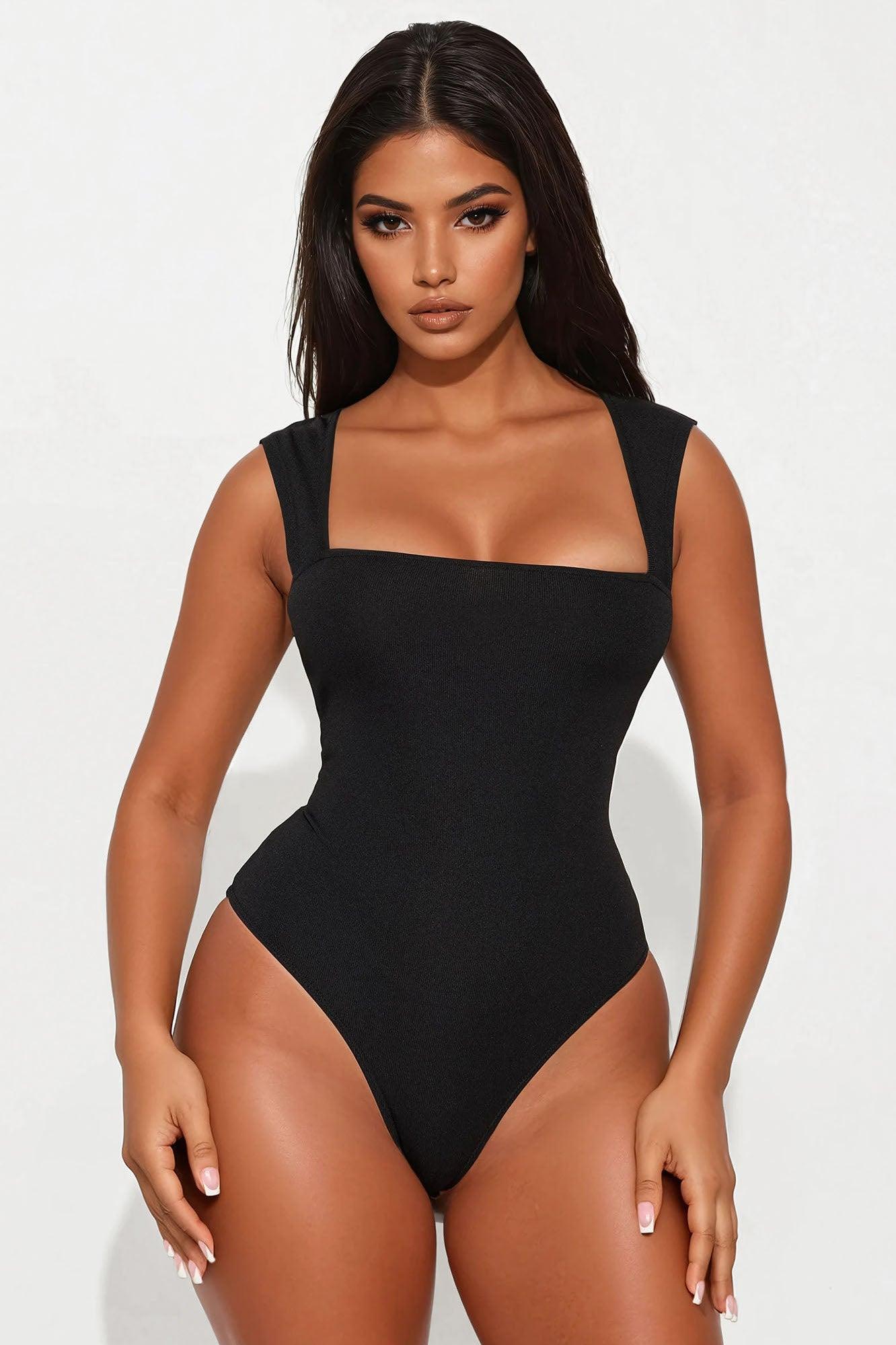 Aviana Square Neck Open Back Bodysuit - Black