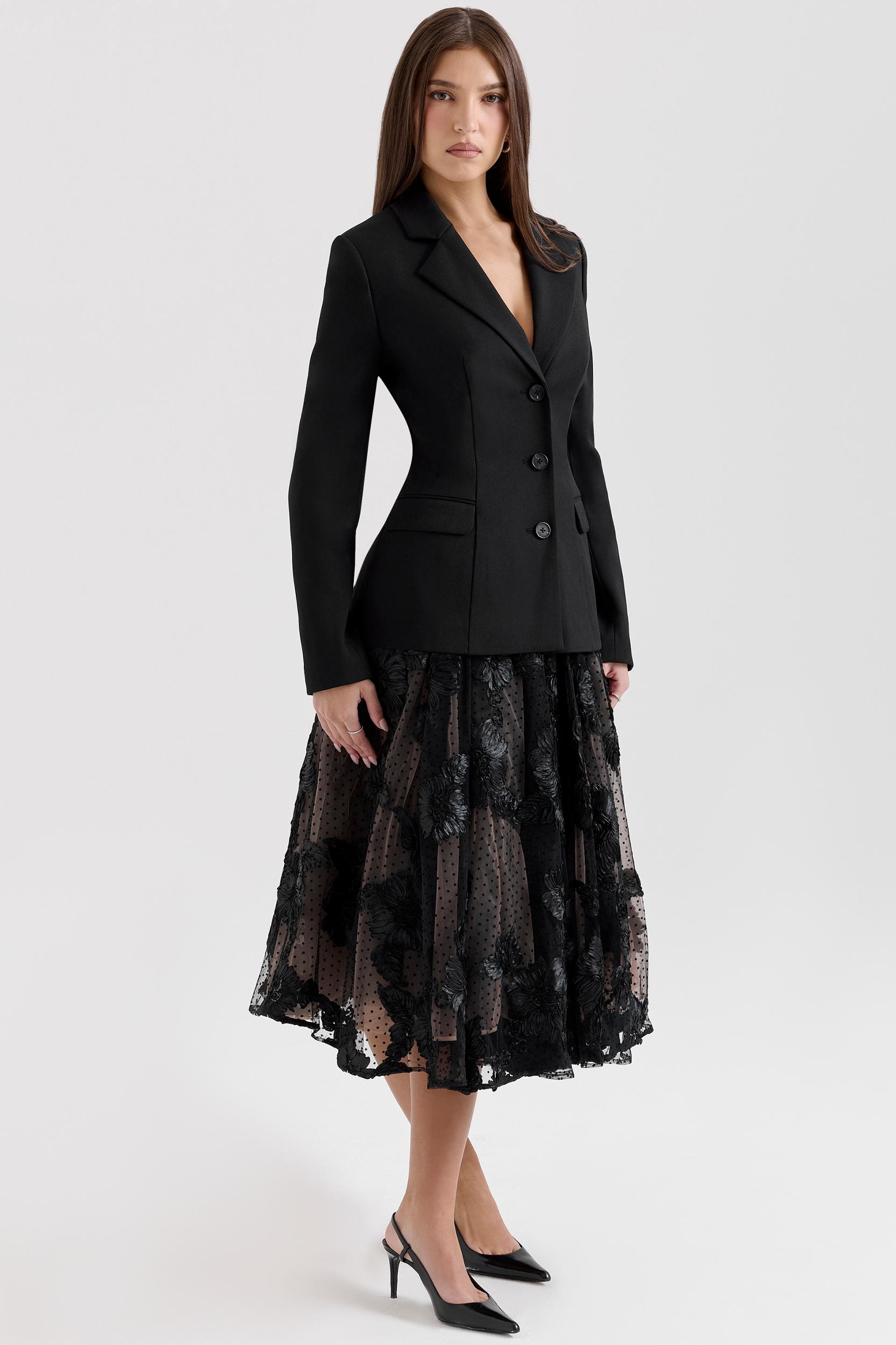 For a modern take on classic tailoring, enlist the 'Aviva' Blazer. It's constructed from a thick crepe fabric that's perfectly structured with additional padding in the hips to create an hourglass silhouette. The refined lapel and traditional darting keeps things sleek and the three buttons down the front and two side pockets make it easy to style and suit to your preference.