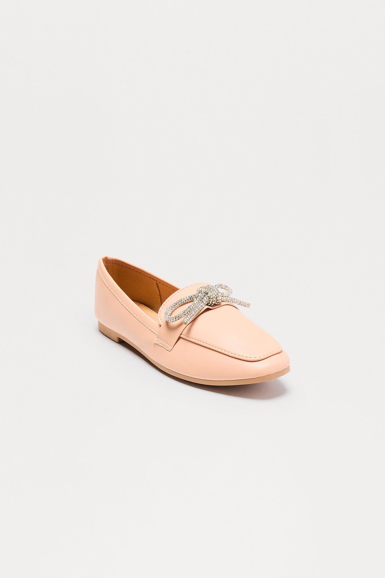 Avy Rhinestone Bow Loafers - Nude Female