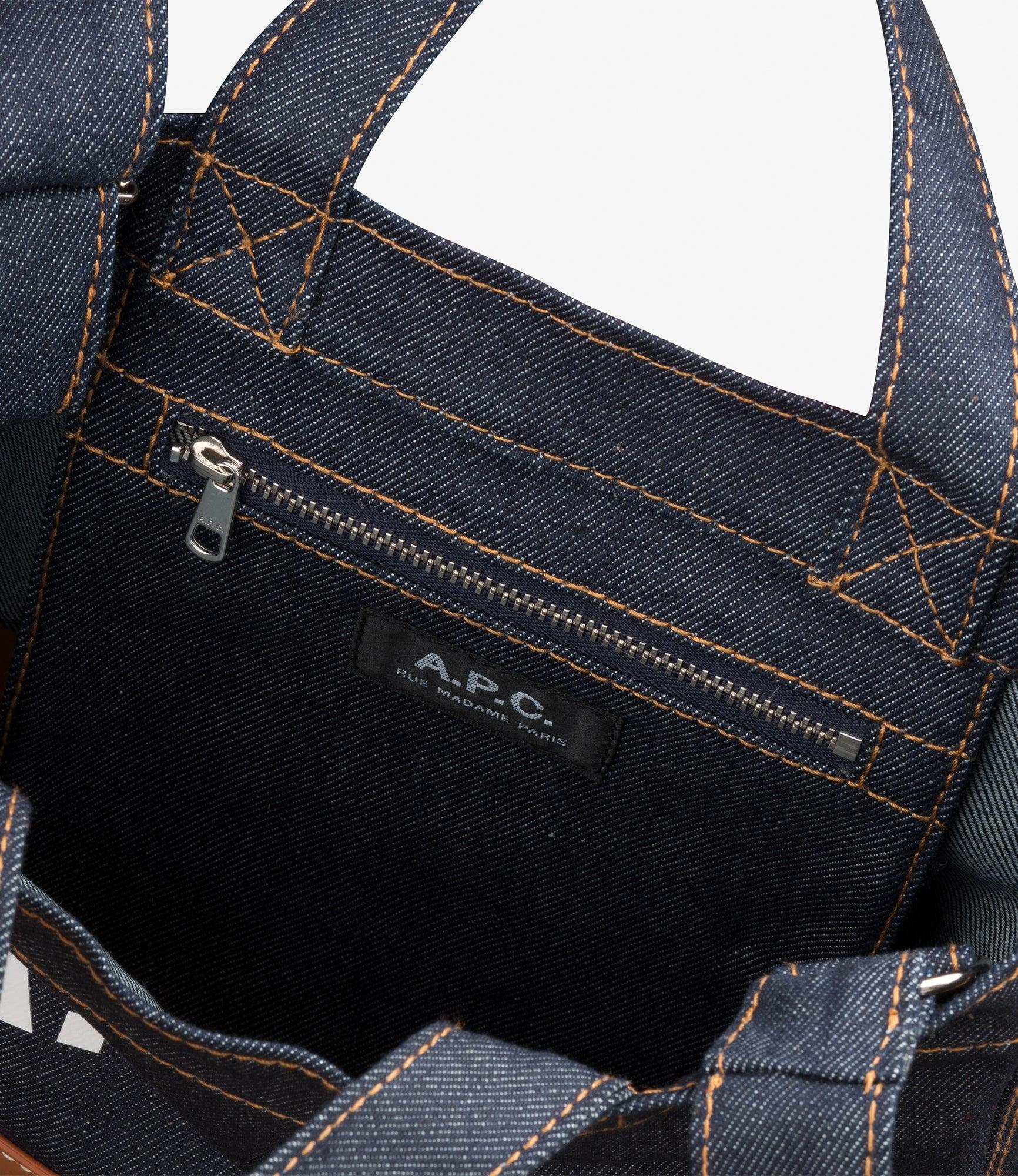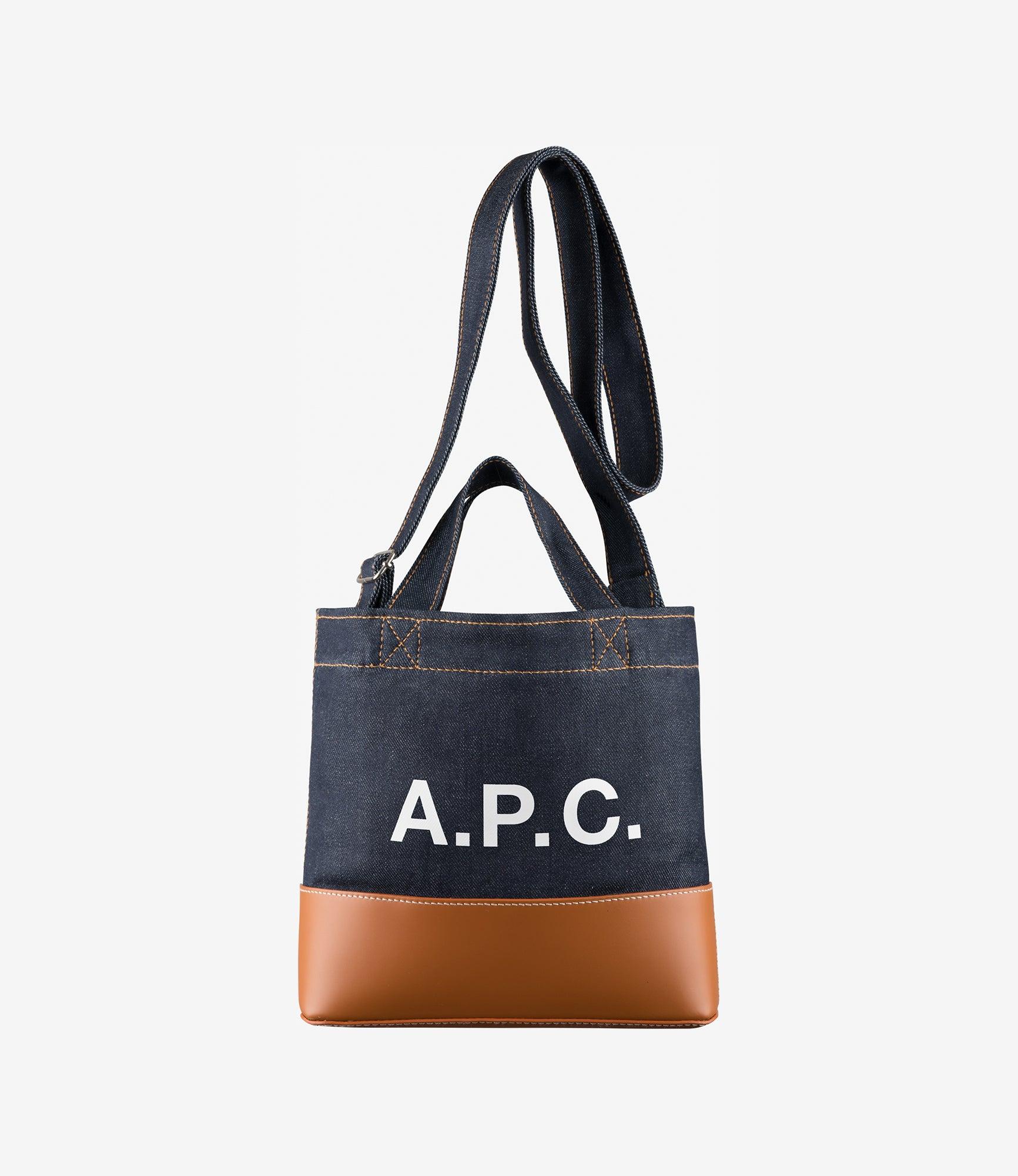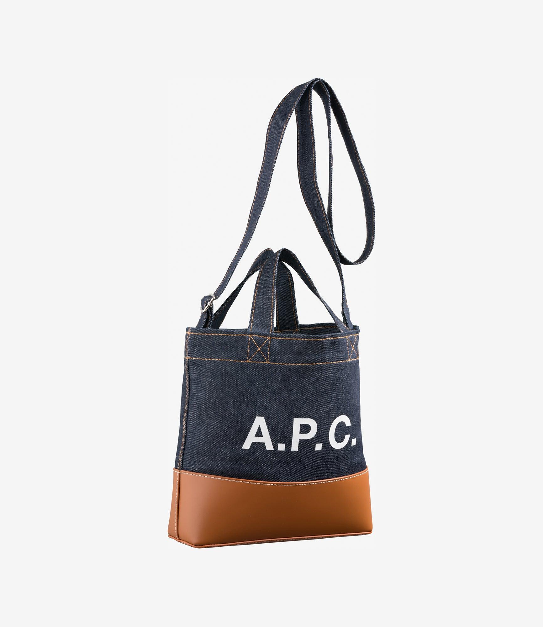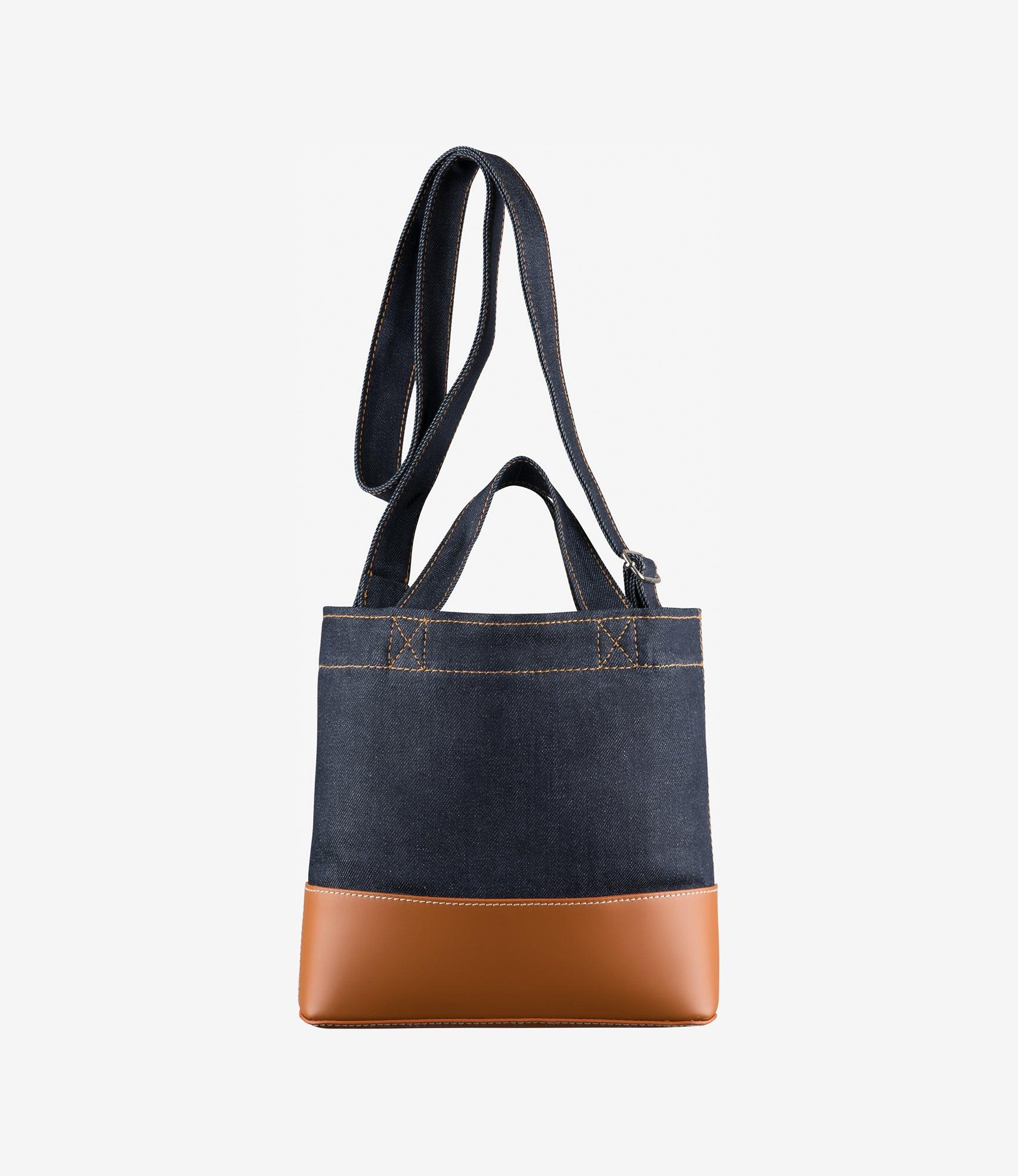- Unisex piece. - Tote bag in Japanese canvas and smooth Spanish leather. - Strap adjusts with a metal buckle to wear the bag on the shoulder or as a crossbody. - Two handles to carry the bag by hand. - Reinforced base. - Interior zip pocket. - Large A.P.C. logo in front. - Caramel topstitching on the denim.