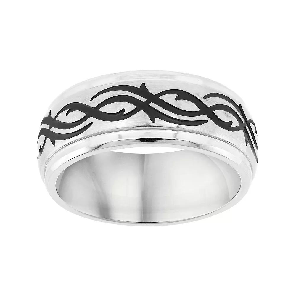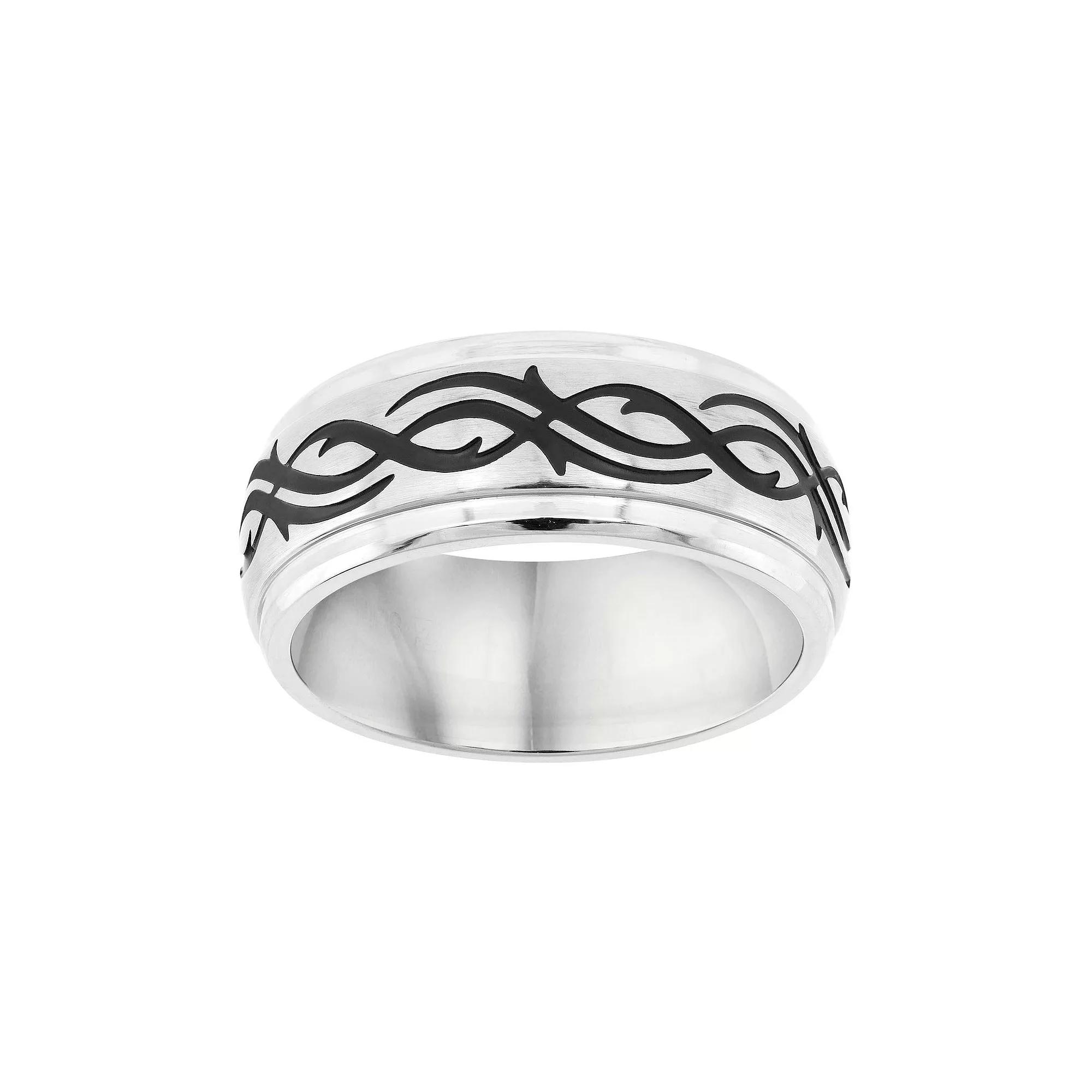 He'll love the unique design of this Lovemark stainless steel black scroll men's wedding band. He'll love the unique design of this Lovemark stainless steel black scroll men's wedding band. Width: 9 mm. Metal: stainless steel Finish: matte Packaging: boxed Please note, due to the high value of this item, a signature may be required upon delivery. Size: 11.50. Color: Grey. Gender: male. Age Group: adult.