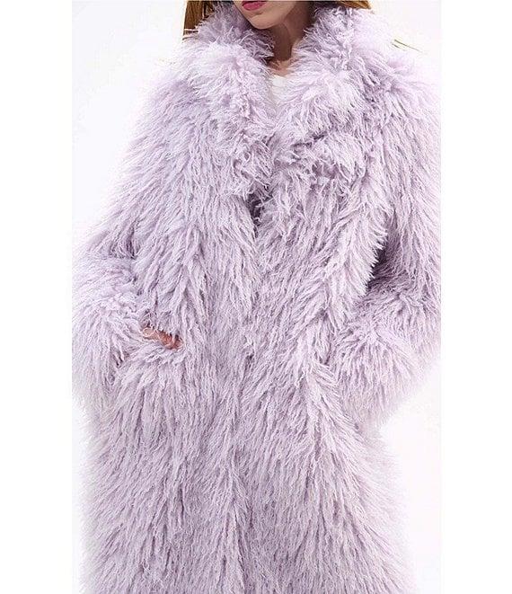 From Azalea Wang, this coat features: Faux fur fabrication Maxi silhouette Shawl collar neckline Long sleeves Front pockets Heavyweight Relaxed fit Fully lined Straight hemline Front hook & eye closure Approx. 46" length Polyester Dry clean Imported.