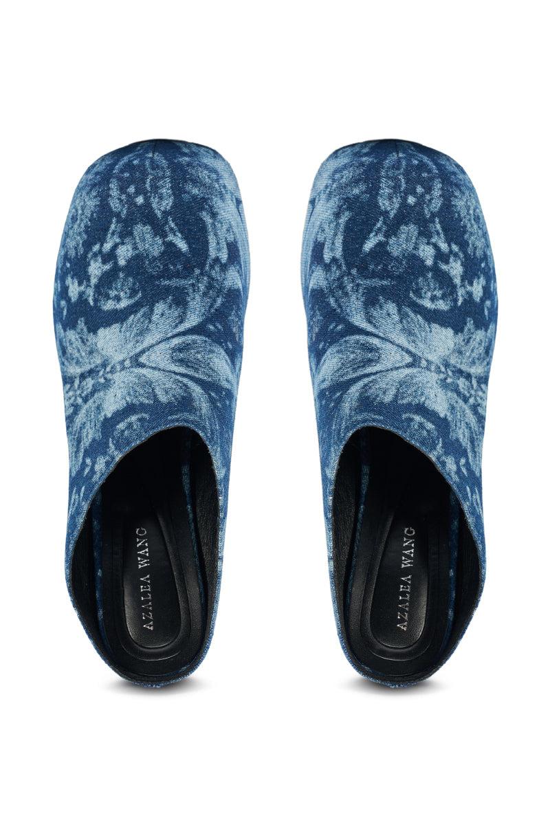 Divine denim baddie! The AZALEA WANG Florea Denim Print Mule is crafted from a dark-wash denim with a faded paisley print throughout. It features a rounded square toe box, a chunky heel, and a Comfort Cushion insole. Complete with an easy, slip-on fit. - Denim Textile Upper- Square Toe- Chunky Heel- Imported (all measurements approximate from size 10)- 4.25” Heel HeightProduct ID: 1074215