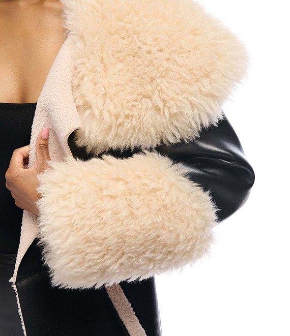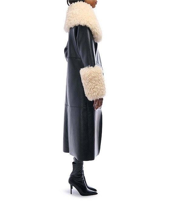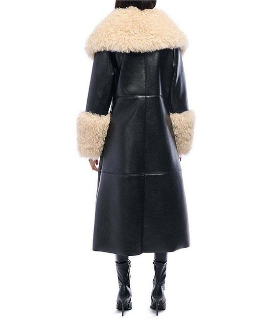 From Azalea Wang, this jacket features: Trench silhouette Oversize faux fur neckline Long sleeves Front welt pockets Faux fur trim detail Relaxed fit Straight hemline Snap front closure Approx. 46" length Polyester; lining: polyester Dry clean Imported.