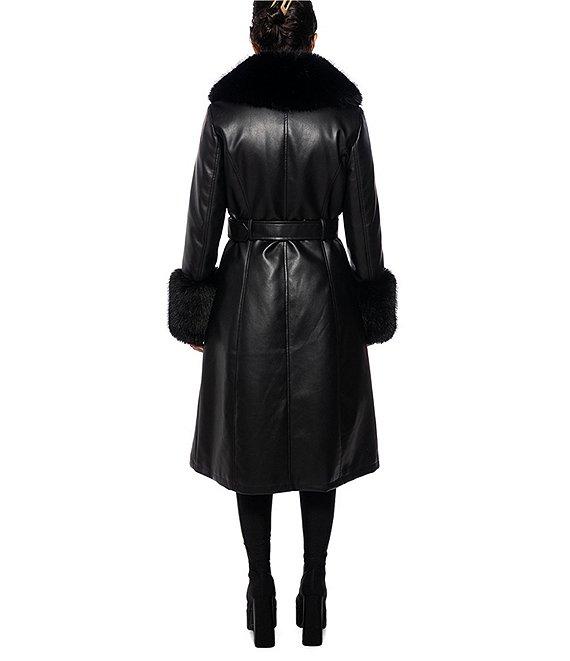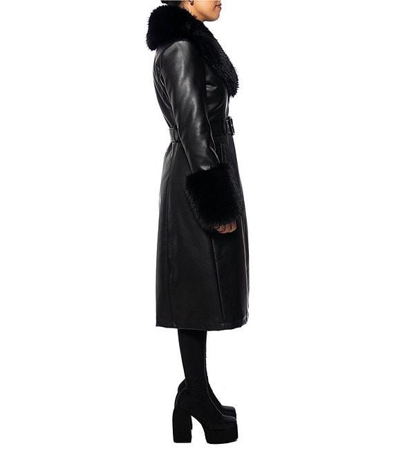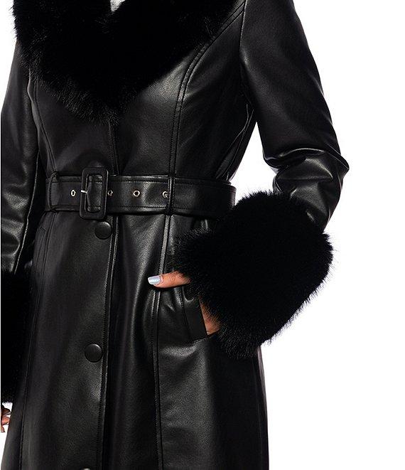 From Azalea Wang, this coat features: Trench coat silhouette Oversize faux fur shawl collar neckline Long sleeves with faux fur cuffs Two front pockets Belted Fitted fit Fully lined Straight hemline Snap front closure Approx. 46" length Polyester Dry clean Imported.