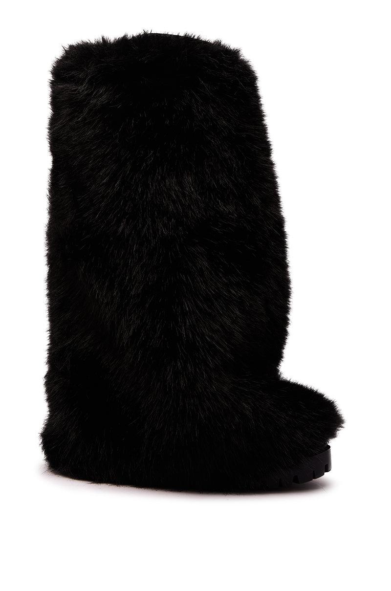 Look fur-st class in the AZALEA WANG Lisboa Black Fur Fold Over Boot. These cozy cuties are crafted from sleek faux leather and features an almond toe, a rugged lug sole and coordinating chunky heel, and an ultra-plush faux fur mid-calf shaft overlay. Complete with a pull-on fit. Pair with your favorite jacket for fabulous flair this winter season. - Faux Fur & Fur Leather Upper- Almond Toe- Chunky Heel- Flatform Lug Sole- Mid-Calf Shaft- Imported (all measurements approximate from size 7.5)- 1.75” Heel Height- 1” Sole Height- 16” Shaft Height- 17” Shaft OpeningProduct ID: 1065384