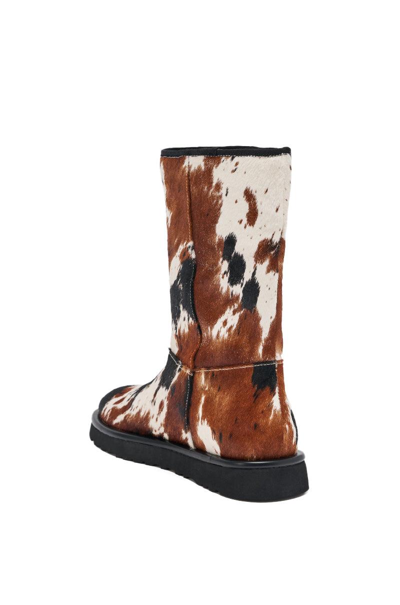 Moo-ve over for the AZALEA WANG Marleigh Cow Flat Bootie. Crafted from lush genuine calf hair with a neutral cow print throughout, this bootie boasts a mid-calf shaft, an almond toe, a flat sole with textured detailing for added grip, and a pull-on fit. Pair with leggings and an oversized knit sweater for a cozy-chic finish. - Genuine Calf Hair Upper- Almond Toe- Flat Sole- Mid-Calf Shaft- Imported (all measurements approximate from size 7.5)- 0.75” Sole Height- 10” Shaft Height- 14.25” Shaft Opening CircumferenceProduct ID: 1082796