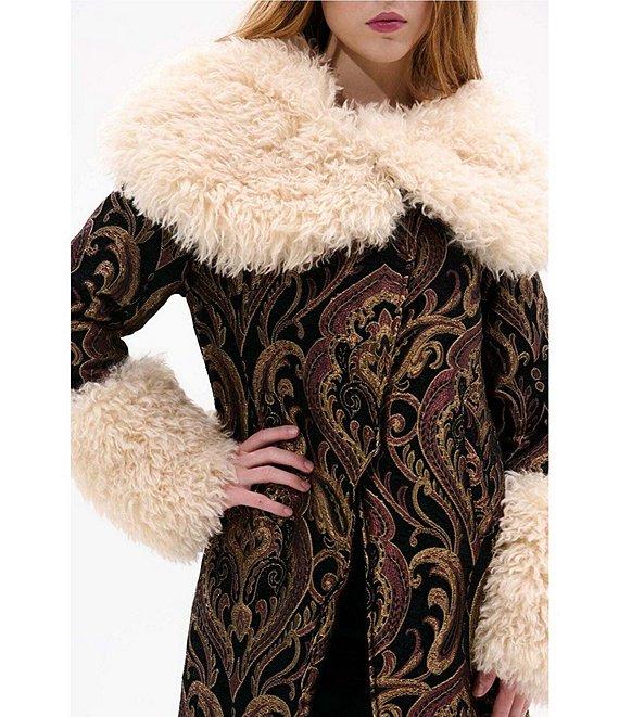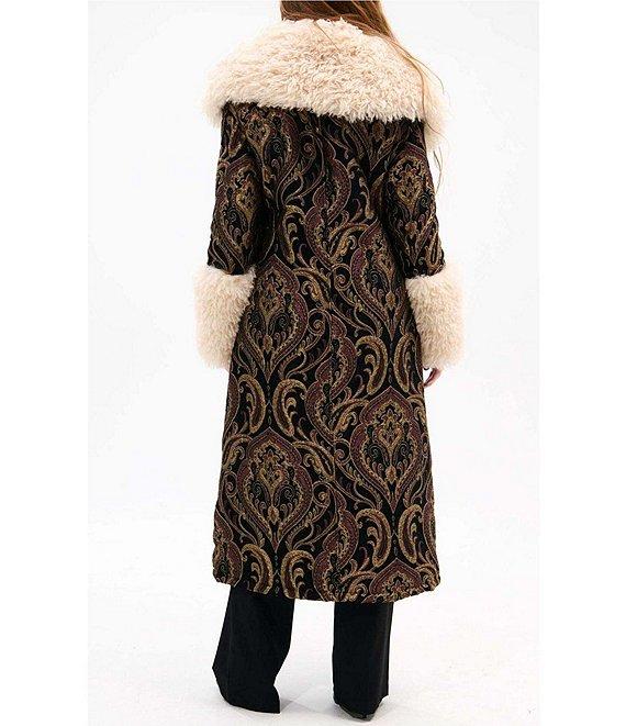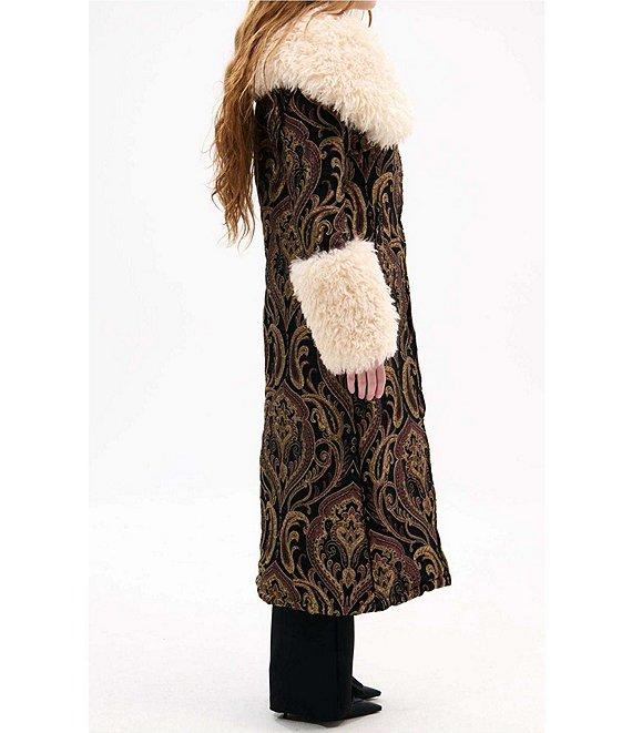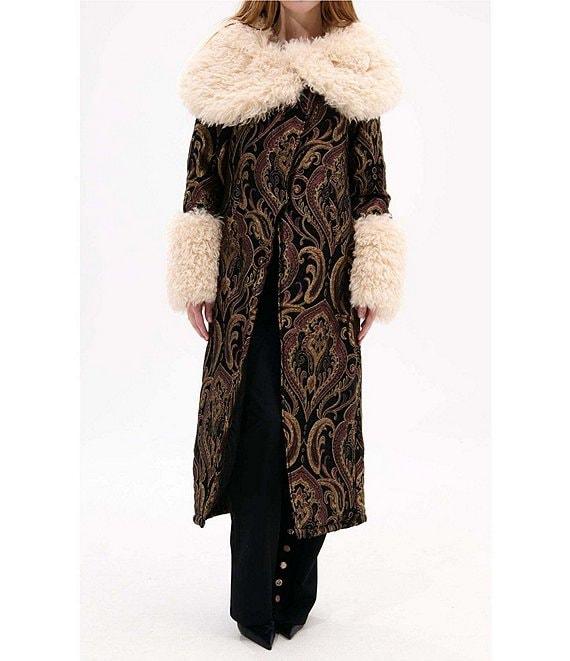 From Azalea Wang, this coat features: Faux sherpa fabrication Trench coat silhouette Brocade pattern Oversize shawl collared neckline Long sleeves with faux sherpa cuffs Two front pockets Belted Oversize maxi fit Fully lined Straight hemline Belted closure Approx. 46" length Polyester Dry clean Imported.