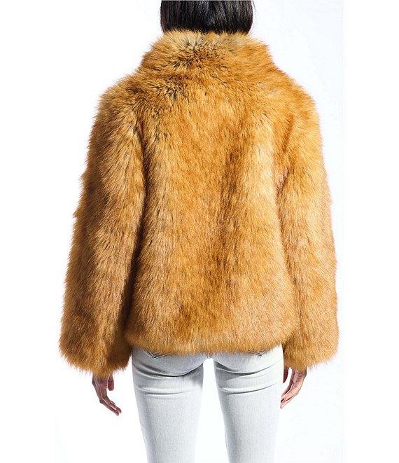 From Azalea Wang, this jacket features: Faux fur fabrication Single breasted silhouette High funnel neckline Long sleeves Two front pockets Oversize fit Fully lined Straight hemline Zip front closure Approx. 29" length Polyester Dry clean Imported.