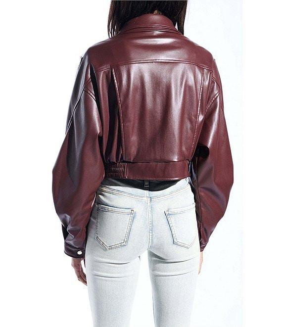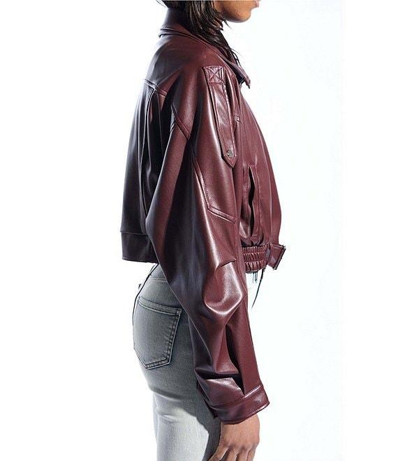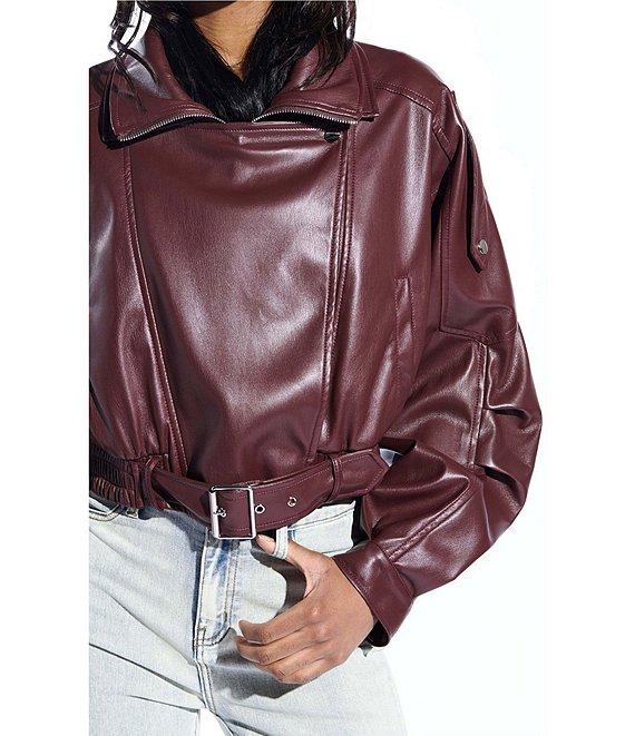 From Azalea Wang, this jacket features: Soft faux leather fabrication Moto silhouette Envelope collar neckline Long sleeves Front pockets Belted Mid weight Oversize fit Fully lined Straight hemline Zip front closure Approx. 29" length Polyester; lining: polyester Dry clean Imported.