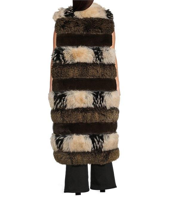 From Azalea Wang Plus, this vest features: Faux fur fabrication Vest silhouette Zigzag pattern Open front neckline Sleeveless Two front pockets Oversize fit Fully lined Straight hemline Hook and eye closure Approx. 46" length Polyester Dry clean Imported.