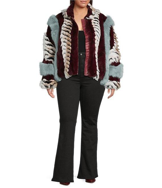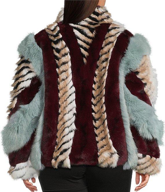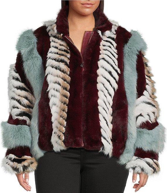 From Azalea Wang Plus, this jacket features: faux fur fabrication striped print curtain collar neckline long sleeves center front zip closure approx. 23" length filled lined body; polyester, lining; polyester/nylon, filling; polyfill dry clean Imported.