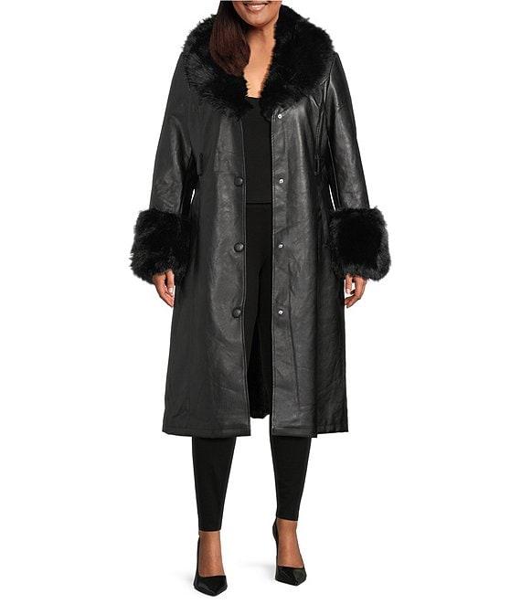 From Azalea Wang Plus, this coat features: Trench coat silhouette Oversize faux fur shawl collar neckline Long sleeves with faux fur cuffs Two front pockets Belted Fitted fit Fully lined Straight hemline Snap front closure Approx. 46" length Polyester Dry clean Imported.