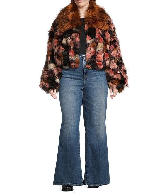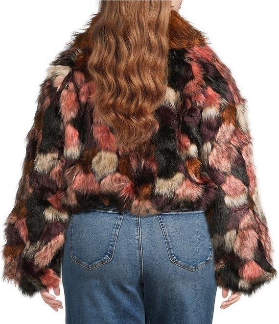 From Azalea Wang Plus, this jacket features: Faux fur fabrication Bolero silhouette Patchwork print Oversize shawl collared neckline Long sleeves Two front pockets Oversize cropped fit Fully lined Straight hemline Snap front closure Approx. 29" length Polyester Dry clean Imported.