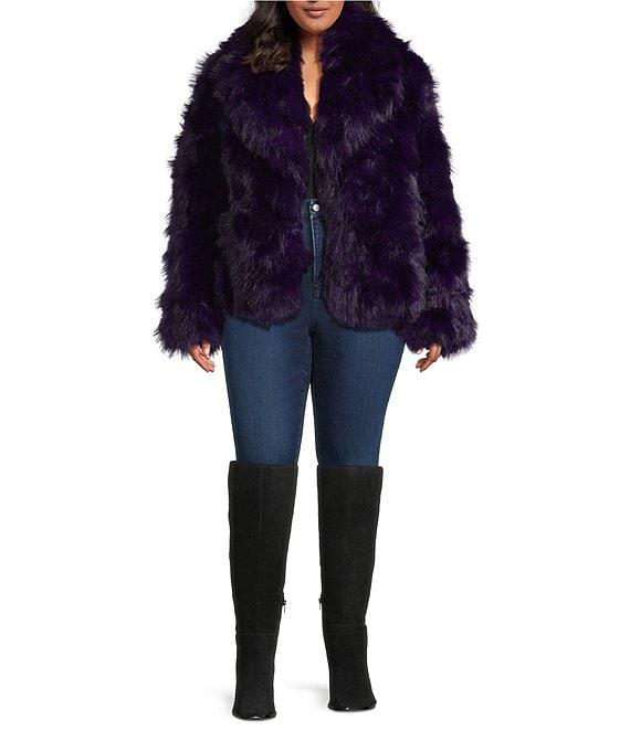 Azalea Wang Plus Size Nago Purple Faux Fur Shawl Collared Oversize Coat