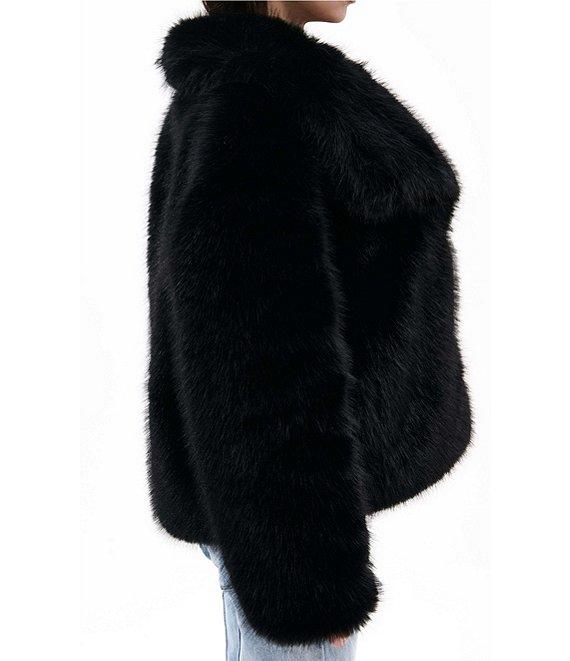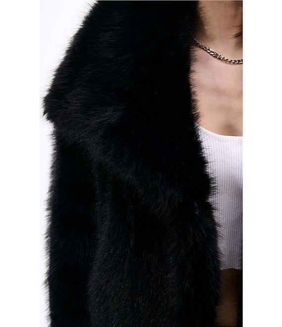 From Azalea Wang, this jacket features: Faux fur fabrication Shawl collar neckline Long sleeves Front pockets Heavyweight Casual fit Fully lined Straight hemline Button front closure Approx. 29" length Polyester; lining: polyester Dry clean Imported.