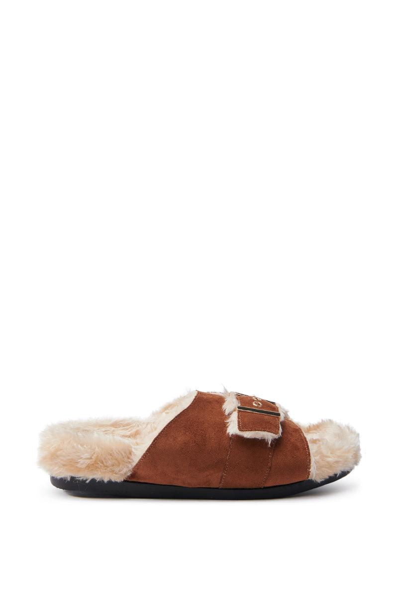 The Three C’s: cute, comfy, casual. The AZALEA WANG Seanna Tan Fur Sandal features a supple faux suede upper with an adjustable, metallic gold buckle detail, an open almond toe silhouette, a flat rubber sole, and an impossibly plush, faux fur-lined Comfort Cushion insole. Complete with an easy, step-in fit. - Faux Suede Upper- Open Almond Toe- Faux Fur Insole- Flat Rubber Sole Product ID: 432213