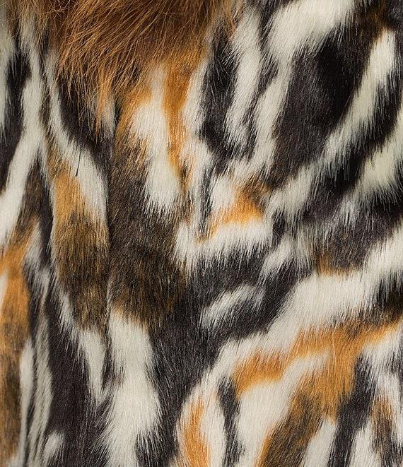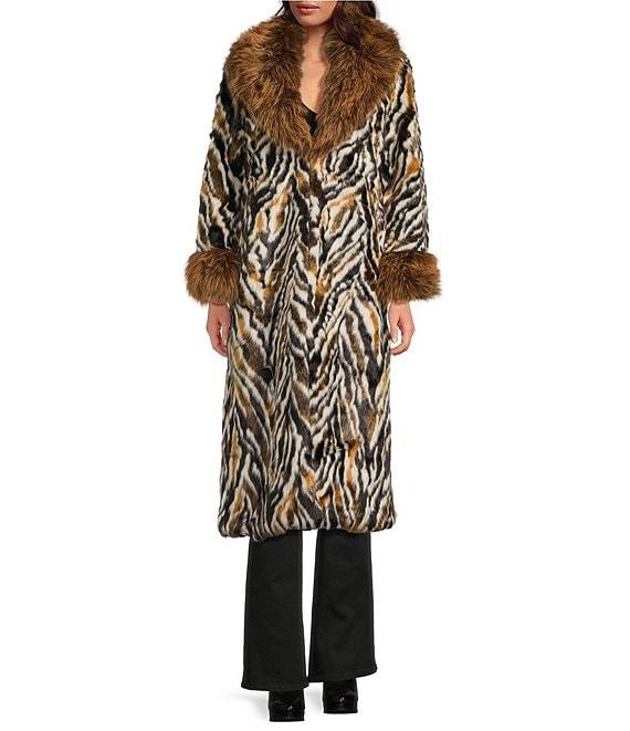From Azalea Wang, this coat features: Faux fur fabrication Trench coat silhouette Retro print Oversize shawl collared neckline Long sleeves with faux fur cuffs Two front pockets Oversize maxi fit Fully lined Straight hemline Snap front closure Approx. 46" length Polyester Dry clean Imported.