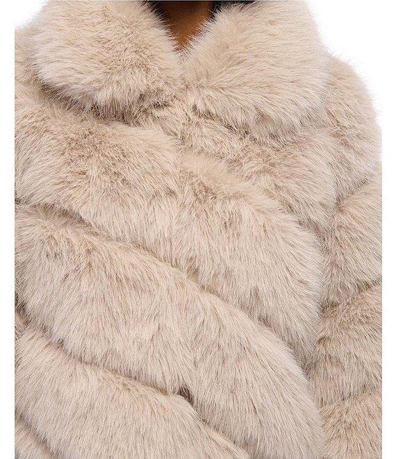 From Azalea Wang, this jacket features: faux fur fabrication point collar neckline long sleeves filled lined center front zip closure approx. 20" length body; acrylic, lining; polyester/nylon, filling; polyfill dry clean Imported.