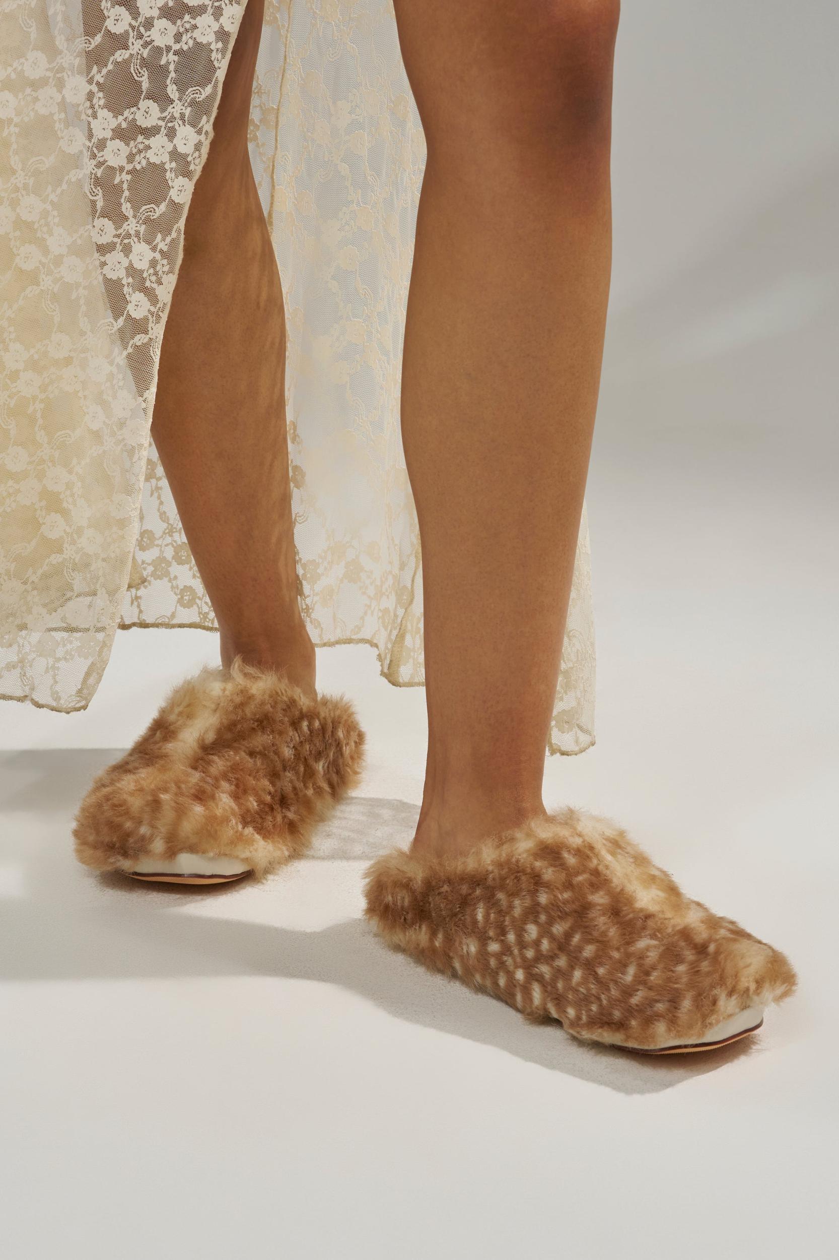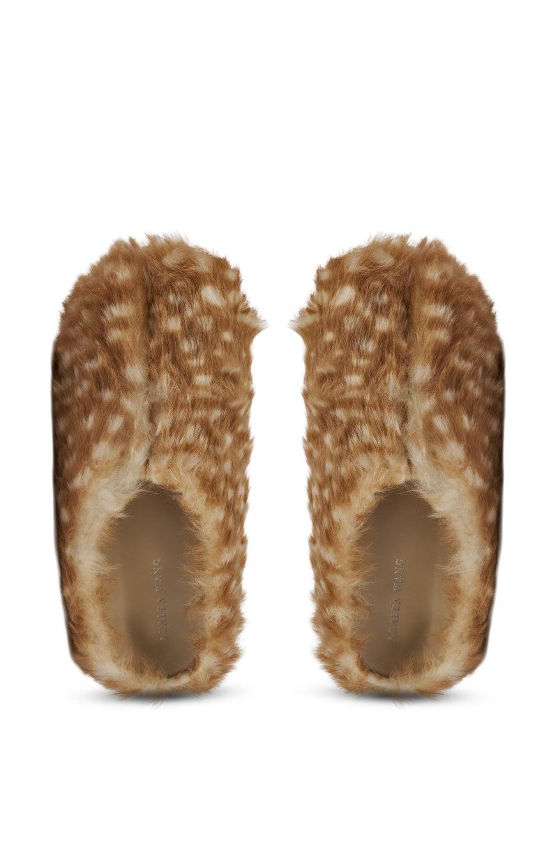 The AZALEA WANG Upnettee Brown Multi Bambi Print Fur Clog is crafted from luscious faux fur with a deer-like print throughout. It features an almond toe, a flat textured sole, a smooth faux leather insole, and an easy, slip-on fit. Style with your favorite joggers or denim for a sweet, effortless finish. (all measurements approximate from size 7.5)- Faux Fur Upper- Almond Toe- Flat Sole- Imported Product ID: 1072892