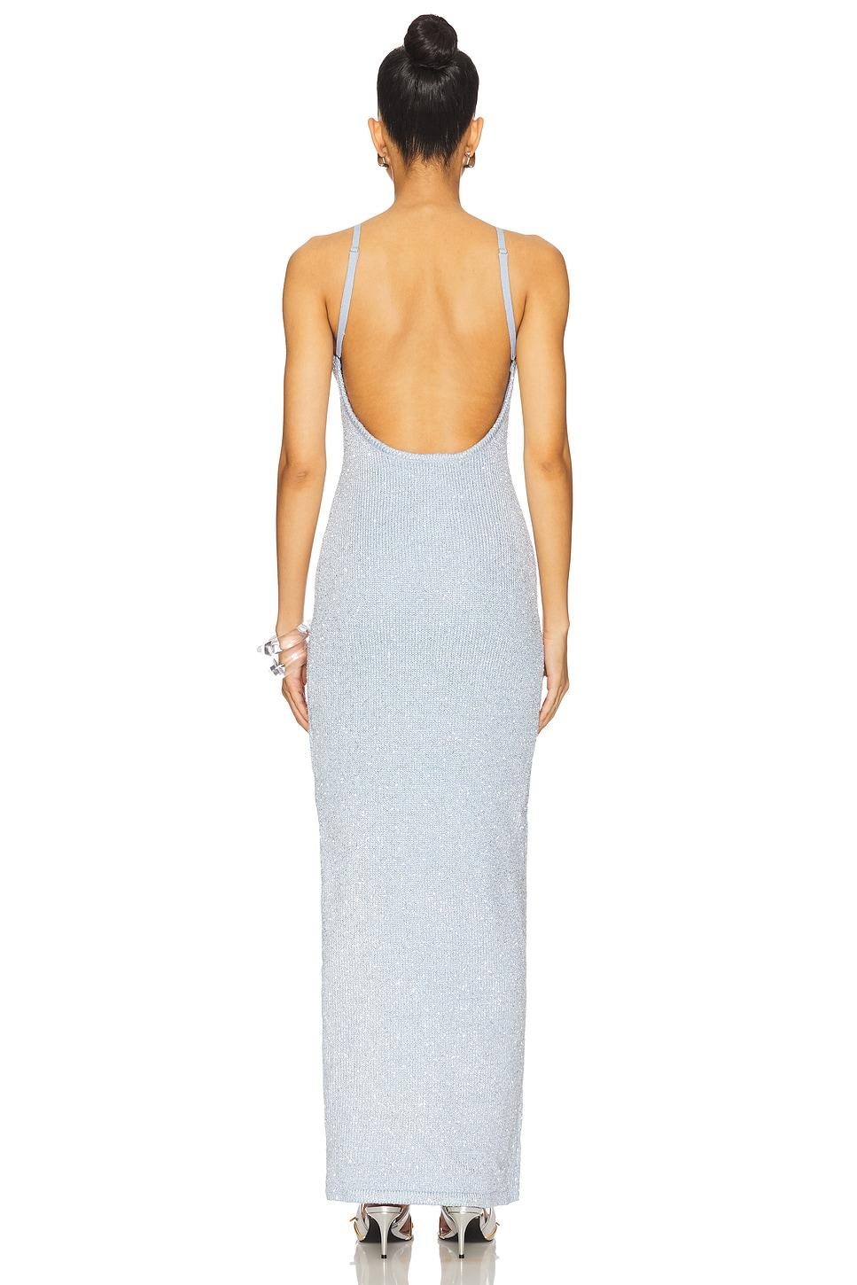Self: 45% viscose, 28% nylon, 27% polyesterLining: 100% rayonMetal: 100% polyester. Machine wash. Fully lined. Pull-on styling. Adjustable shoulder straps. Midweight slinky knit fabric with sequin embellishments and side slit. Made in China. Revolve Style No. SDYS-WD383. Manufacturer Style No. SFD704N3.
