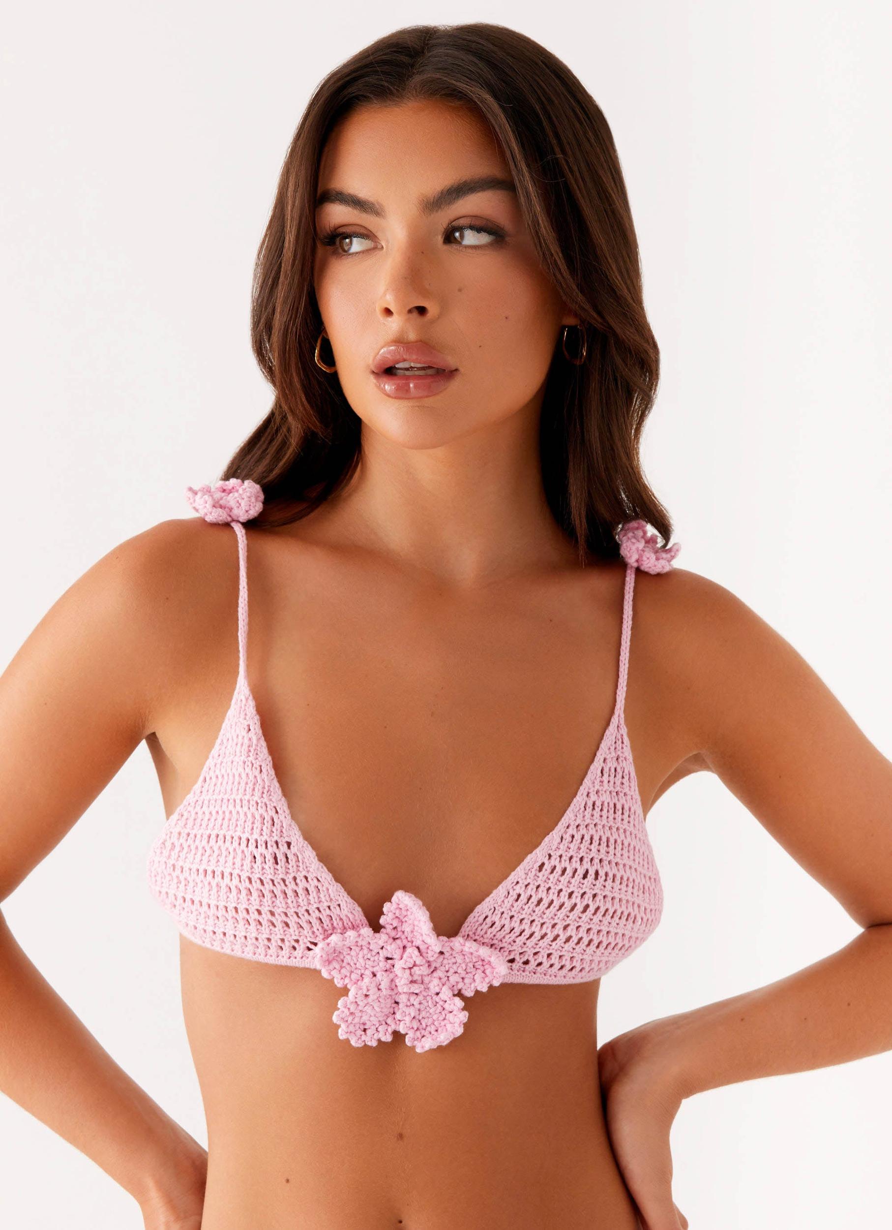Peppermayo ExclusiveThe Aziza Crochet Bikini is a standout swimwear piece that combines intricate crochet design with a modern, flattering fit. Featuring a cropped length, the top offers a trendy twist on the classic bikini, while the unlined design keeps it light and breathable for ultimate comfort. - Cropped Length - Triangular Bust Cups - Crochet Material - Unlined - Semi Sheer - Open Back - Flower Embellishments - Back Tie - Thin StrapsSize AU 8 / US 4 garment measurements:Bust Cup Width - 17cmBust Cup Edge - 17cm Roberta is 177cm and wears size AU 6 / size US 2