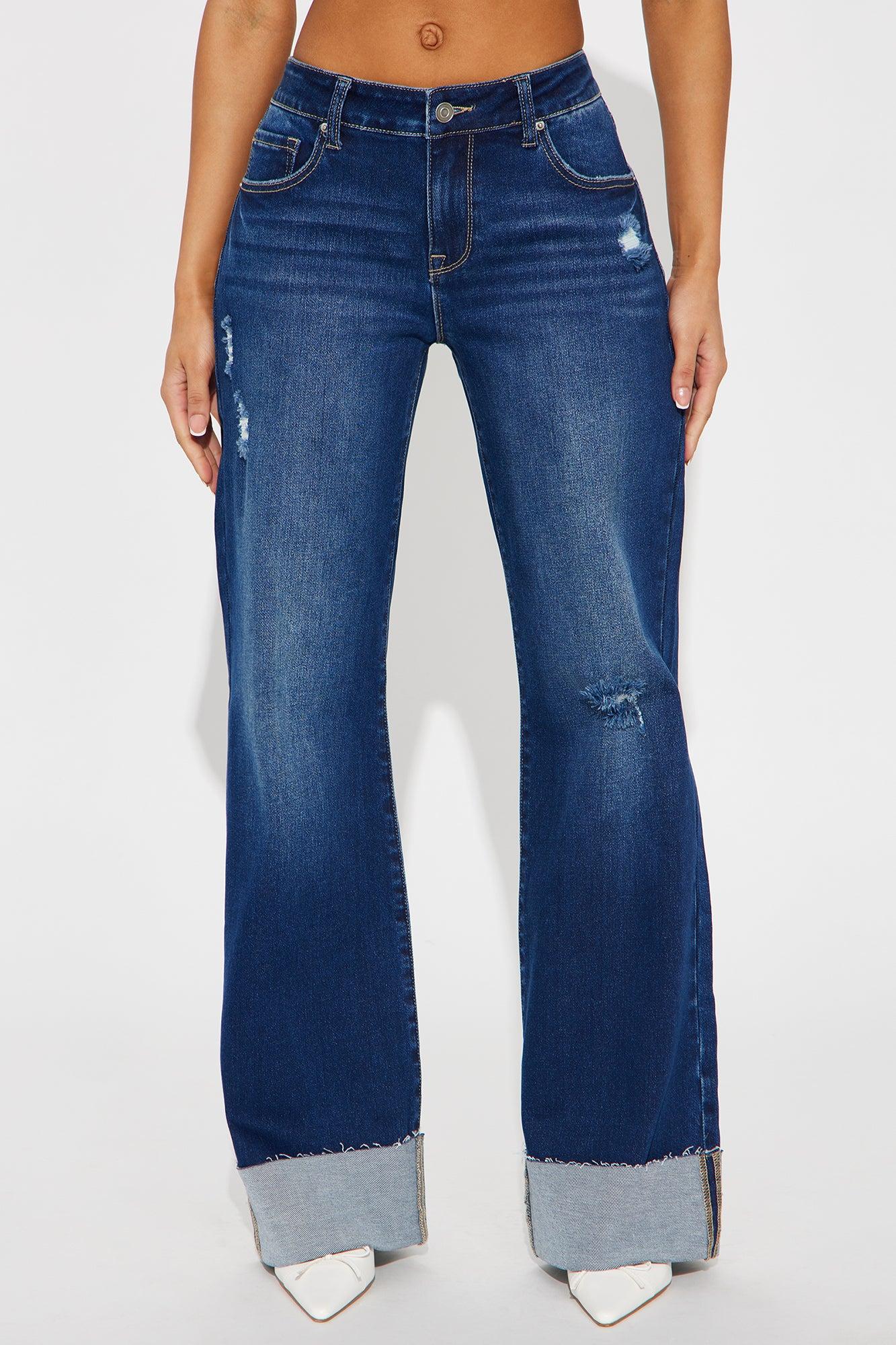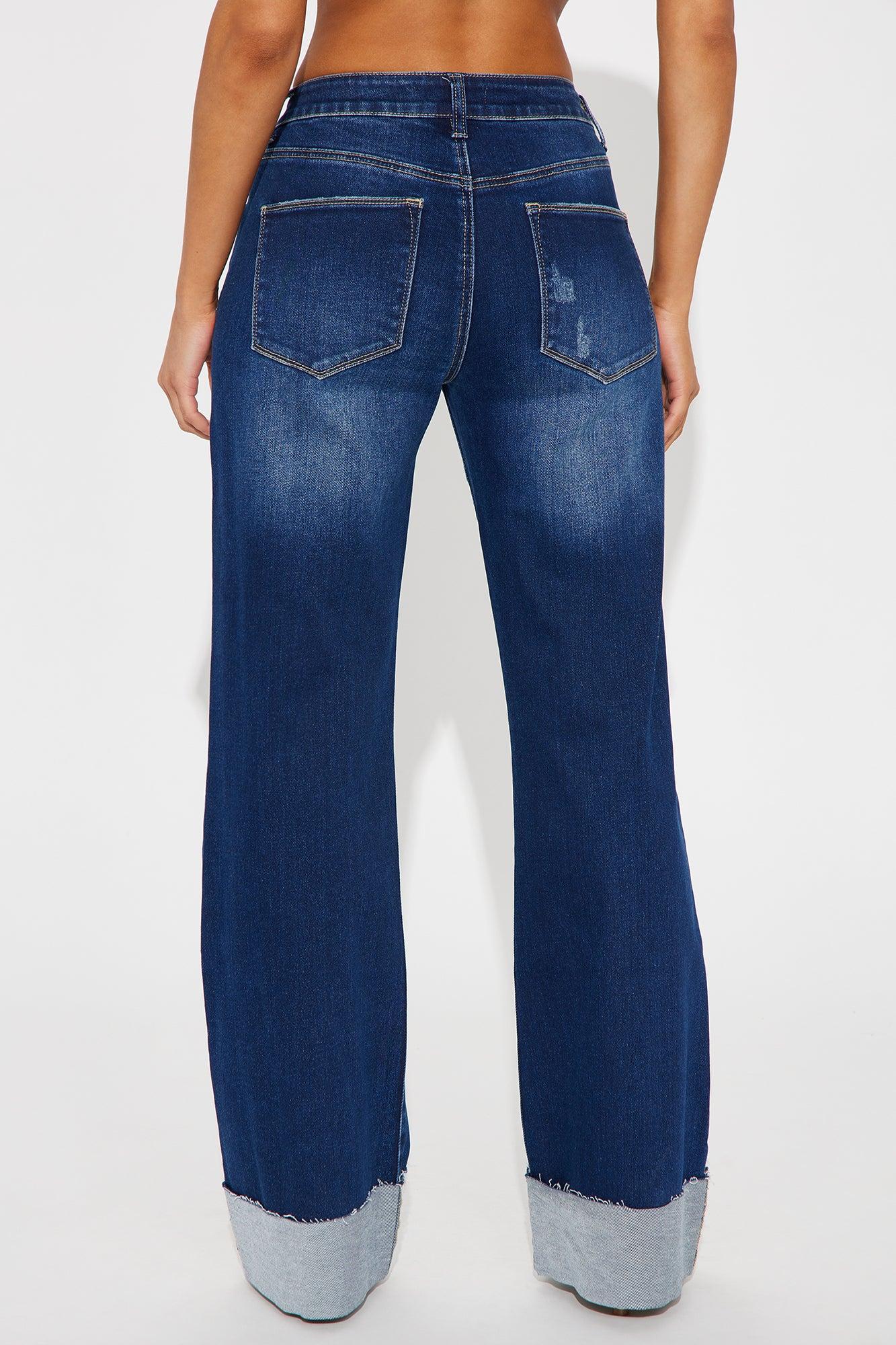 Azura Low Rise Cuffed Wide Leg Jeans - Dark Wash