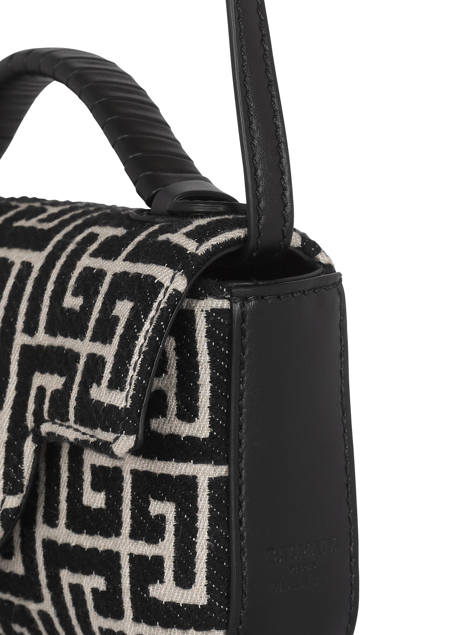 B-Buzz mini monogrammed jacquard bagHandle and adjustable detachable shoulder strapFlap with magnetic B clasp in metal and intertwined leatherCard pocket on the insideReinforced bottomGolden hardwareComes with a protective coverDimensions: 17 x 10 x 4 cm