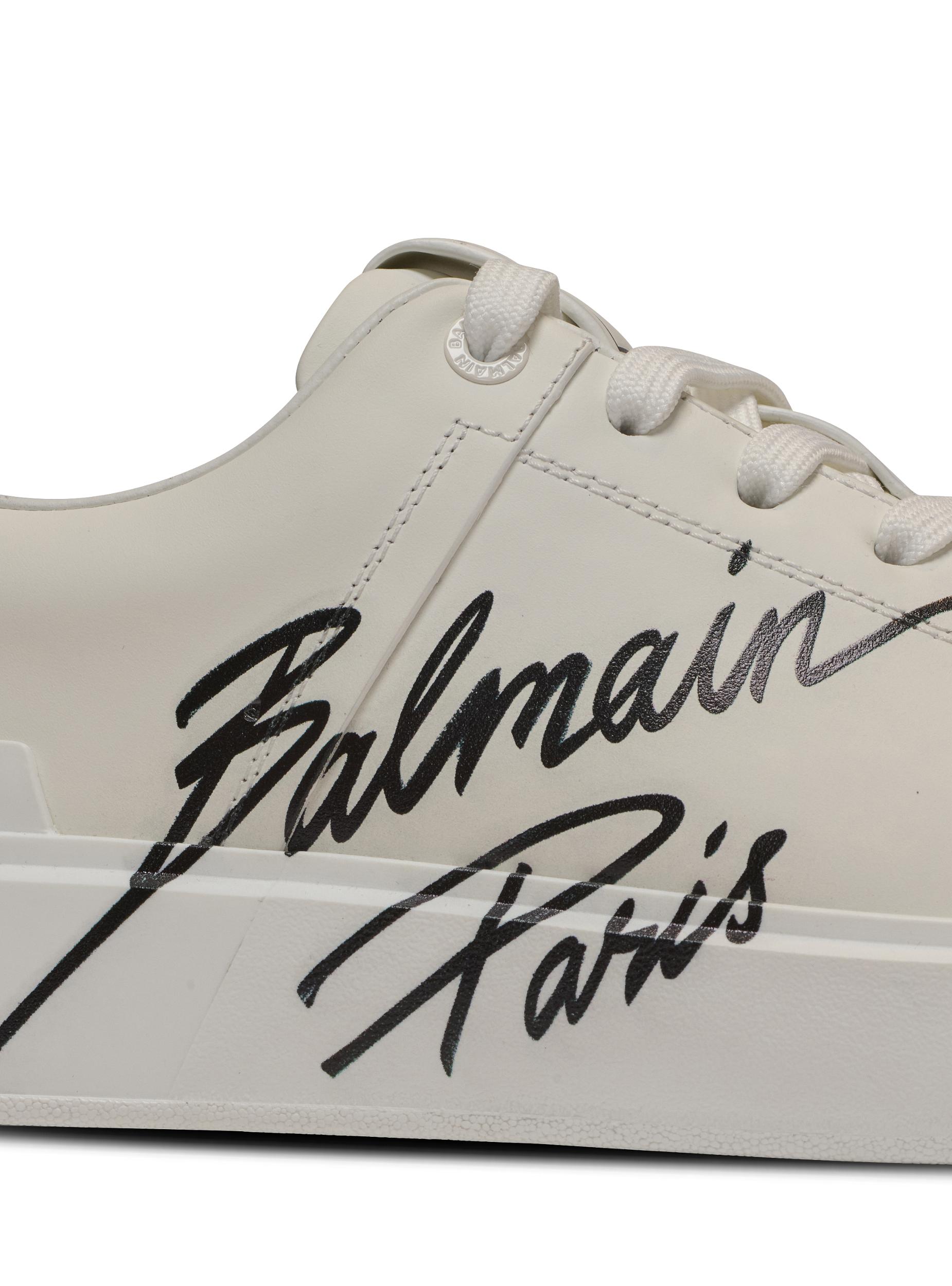 B-Court trainers in calfskinLace fastening with engraved eyeletsLeather label with Balmain Paris logoContrasting Balmain Paris logo printed on the sideLeather insert with embossed B logo on the backThick rubber outsole with raised Balmain logoLeather lining and insoleMain material: 100% calfskinMade in ItalyItem: EM0VI288LIPB