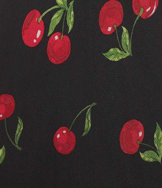 B. Darlin Cherry Print Scoop Neck Tie Front Ruffle Hem Midi Dress