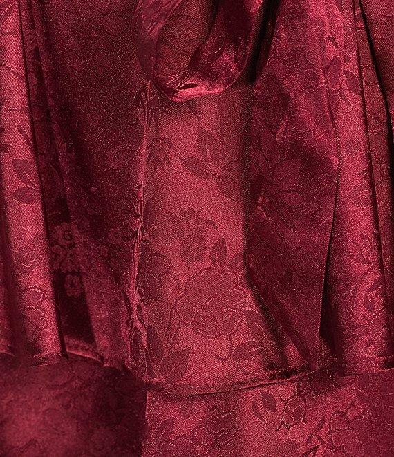 From B. Darlin, this dress features: Floral print Sweetheart neckline Long sleeves Tie waist detailing Tiered skirt Fit & flare silhouette Mini length Zip back closure Polyester/spandex Hand wash/line dry Imported.